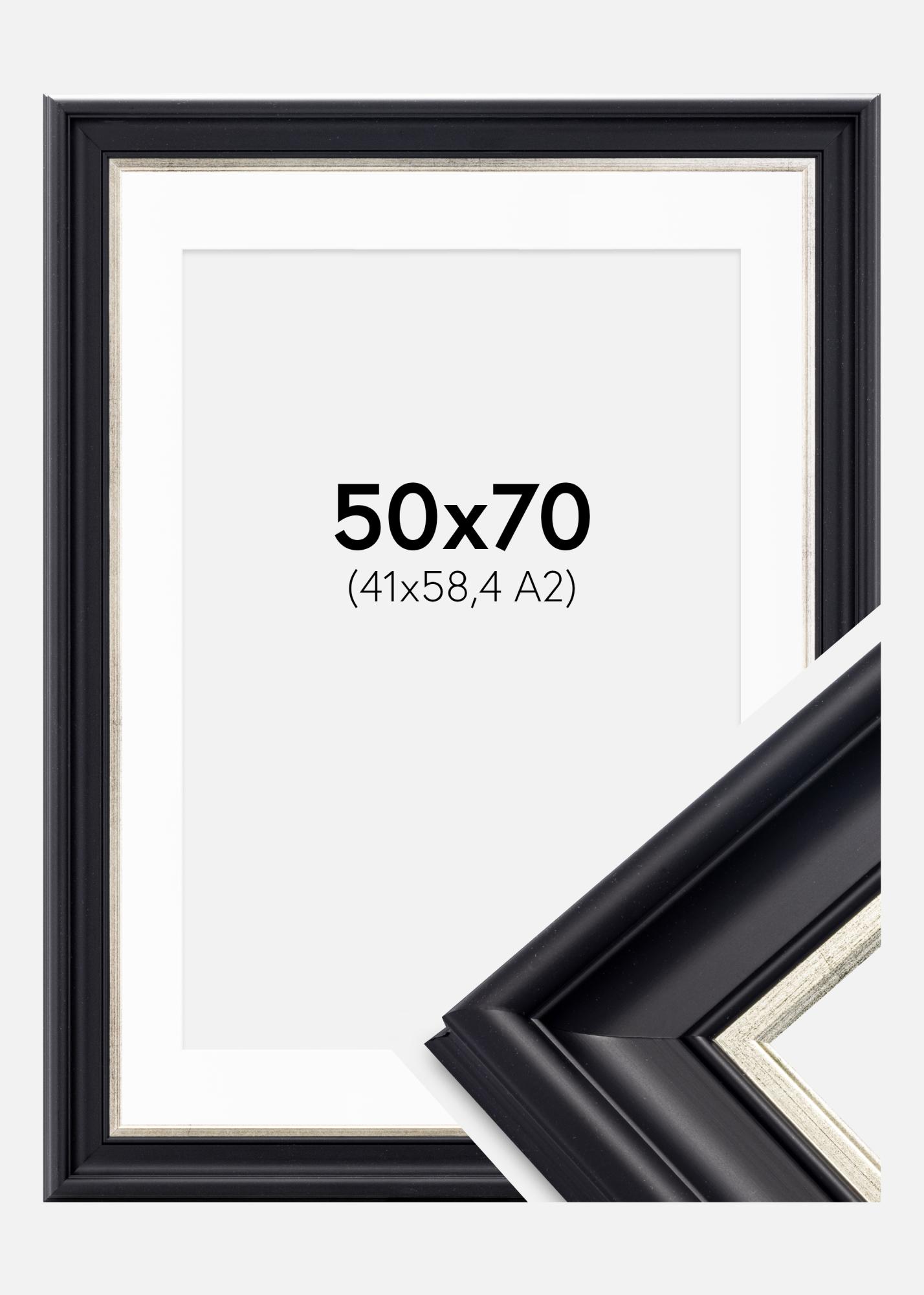 Rám Dalarna Cierno-strieborná 50x70 cm - Pasparta Biela 42x59,4 cm (A2)