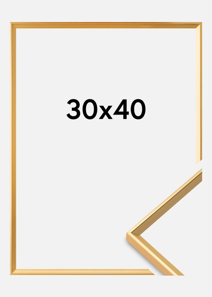 Dodajte svojim stenám nádych elegancie s naším lesklým rámom na fotografie v zlatej farbe. S rozmerom 30x40 cm je tento rám na obrazy ideálny na zvýraznenie vašich obľúbených fotografií alebo umeleckých diel. Štíhla rámová lišta s hrúbkou iba 10 mm dodáva vašemu interiéru elegantný a moderný vzhľad.