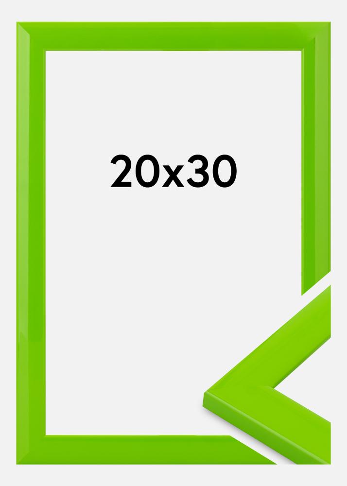 Rám je vyrobený z dreva a má 23 mm širokú lištu a hĺbku 13 mm. Lesklá povrchová úprava dodáva elegantný pocit, ktorý sa skvele hodí do moderných, škandinávskych alebo hravých interiérov. Jasná zelená farba je vhodná ako pre fotografie, tak aj pre plagáty.