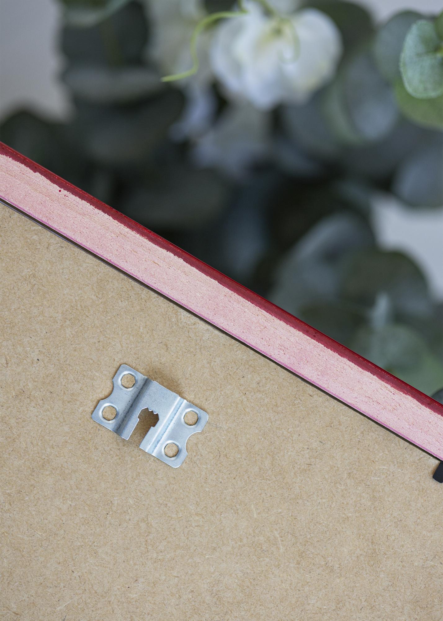 Rám je vyrobený z dreva a má elegantnú povrchovú úpravu, ktorá sa skvele hodí do moderných aj farebných interiérov. Bohatá červená farba prináša do miestnosti sofistikovaný prvok, či už ho použijete na fotografie alebo plagáty. Rám je vybavený kovovými závesmi na zadnej strane, takže ho môžete jednoducho zavesiť vodorovne aj zvisle.