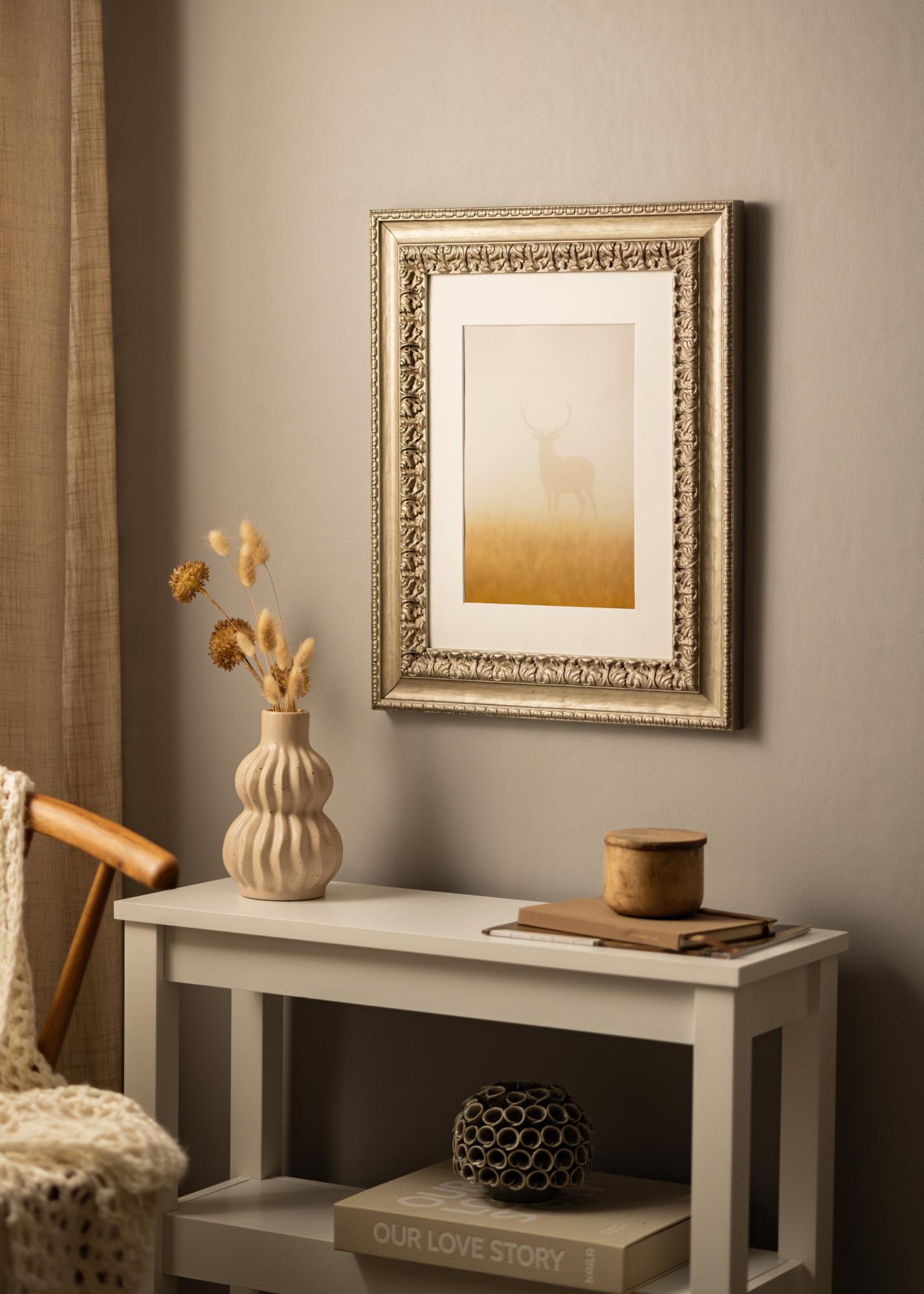 Rám Drottningholm Silver III je elegantný a štýlový fotorám, ktorý dodá vašim obrázkom klasické rámovanie. So svojou krásnou striebornou farbou a 68 mm širokým rámovým pásom sa Táto rám obrazu stáva pútavým prvkom v akejkoľvek miestnosti. Hĺbka rámu 30 mm mu dodáva robustný pocit, zatiaľ čo pridáva vašim stenám dimenziu elegancie.