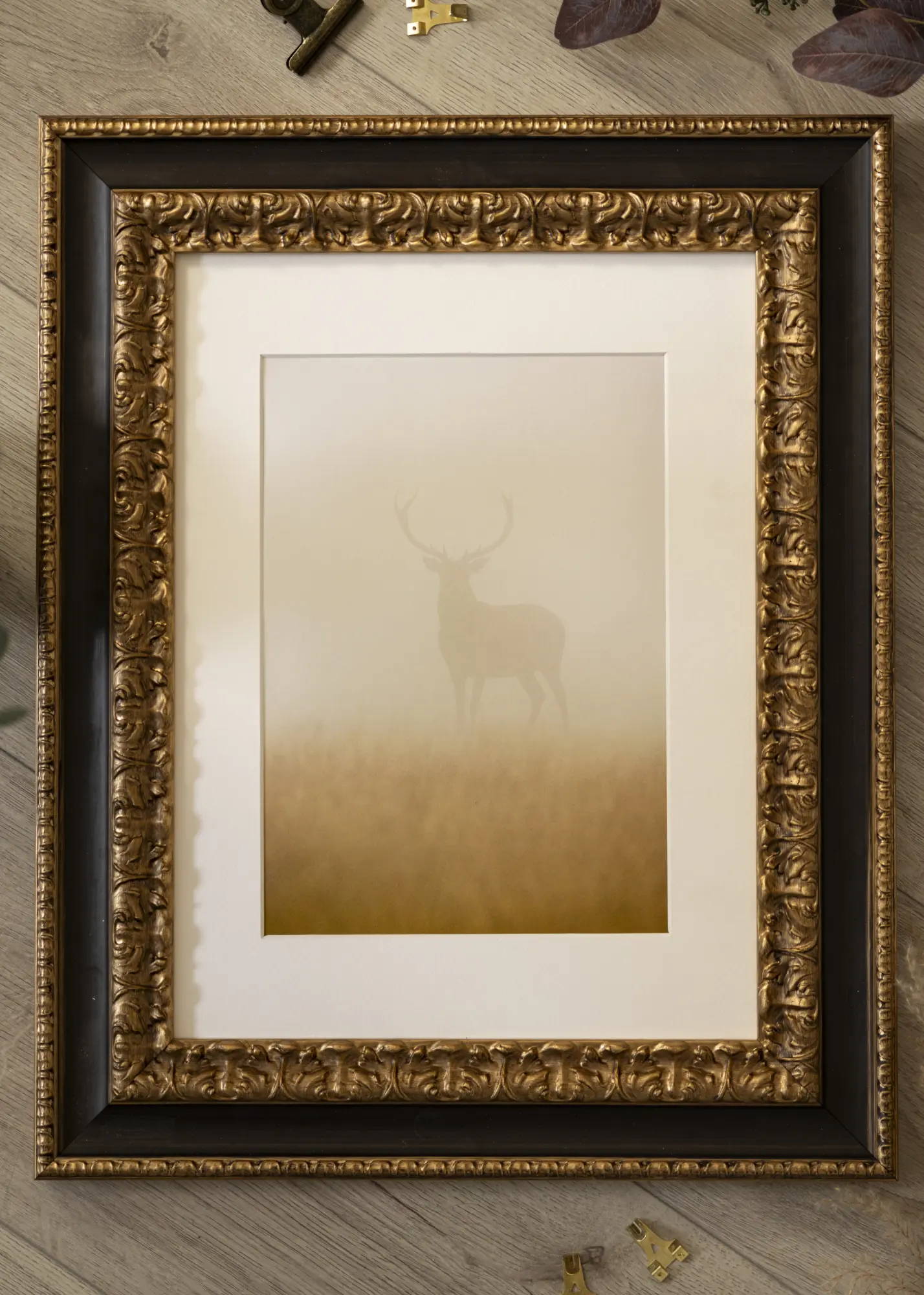 "Drottningholm Guld" je krásny retro rám z Talianska z prstovo spájaného smrekovca, ktorý je ručne maľovaný. Rám má bohato zdobený zlatý profil so širokým čiernym okrajom, ktorý mu dodáva elegantný pocit. Perfektný pre všetky druhy zarámovania v retro štýle.