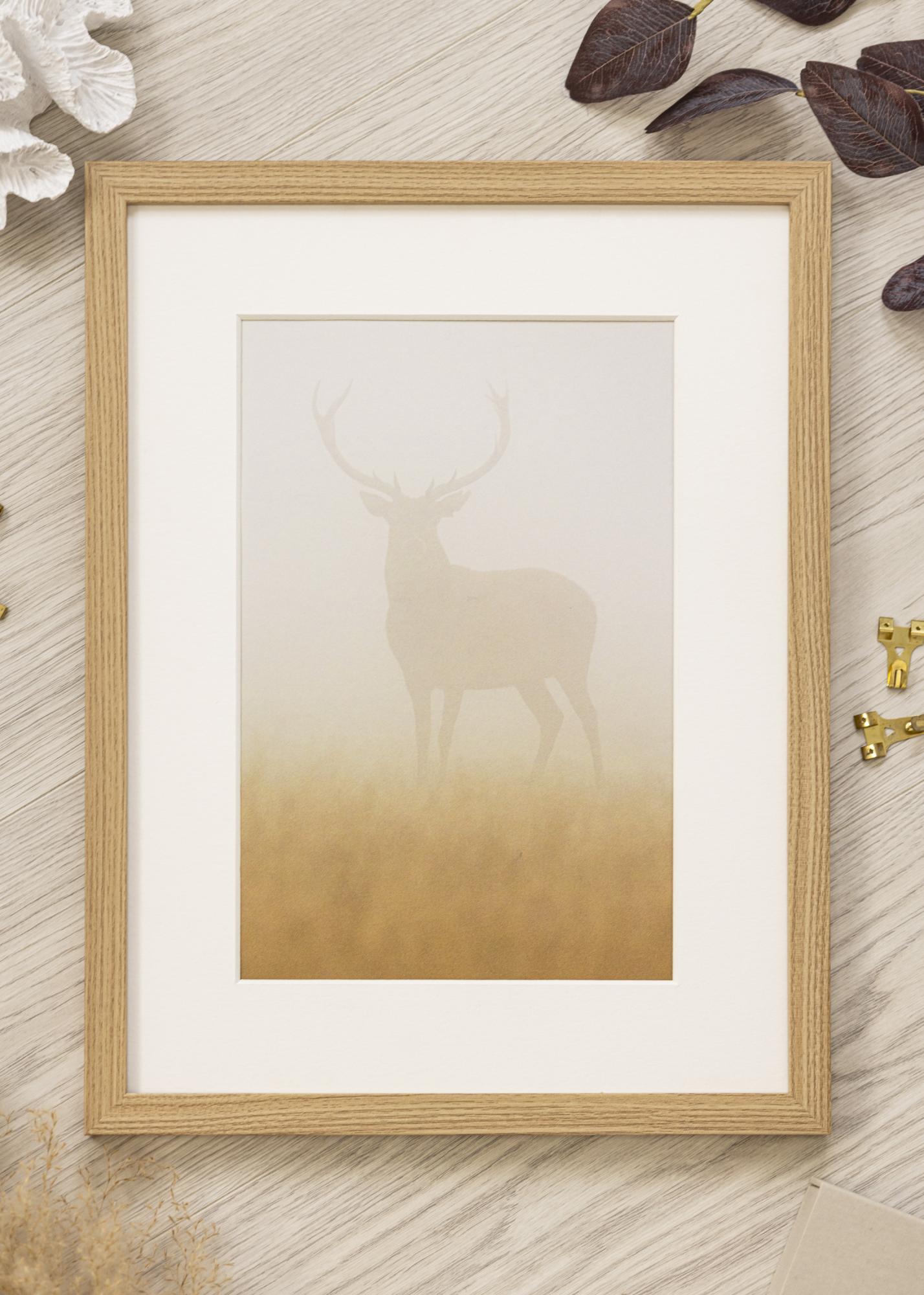 Táto štýlový rám v imitácii dubového dreva je perfektný na zvýraznenie vašich obľúbených motívov. S veľkosťou 40x50 cm je ideálny na to, aby vašim obrazom poskytol elegantné zarámovanie. Svetlá imitácia duba poskytuje teplý a prirodzený pocit, vďaka čomu sa rám hodí do väčšiny interiérových štýlov. Povrch navyše má jemné žilkovanie, ktoré napodobňuje pravý dub, čo vytvára živý a harmonický dojem.