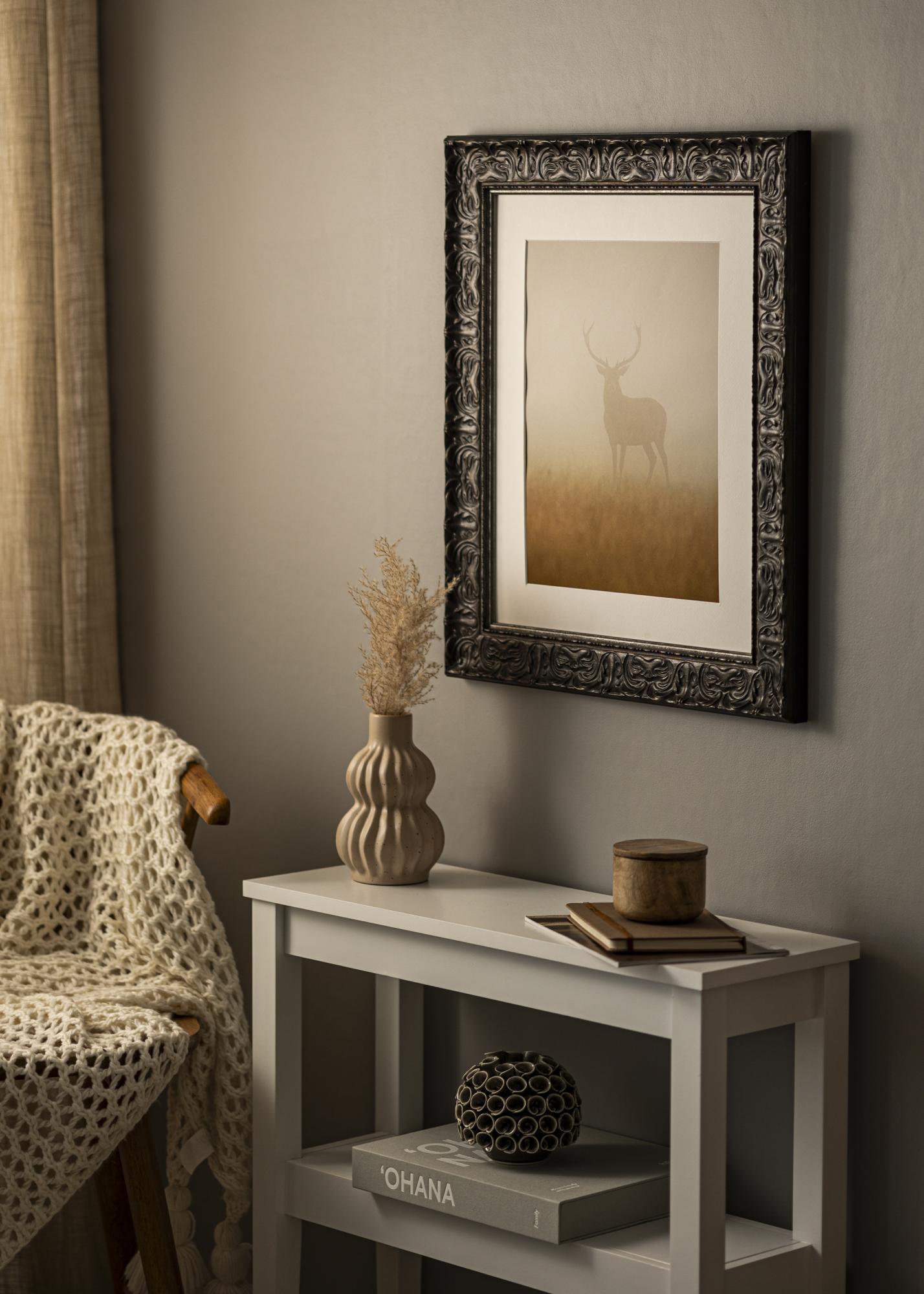 Rám Durham Čierna je elegantný a štýlový fotorám, ktorý dáva vašim obrázkom klasické a rustikálne orámovanie. So svojou tmavou anticko-hnedou farbou a dekoratívnym reliéfom vytvára starodávny povrch, ktorý zosilňuje pocit nadčasovosti vo vašom domove. Táto rám na obrazy je ideálny pre tých, ktorí chcú dodať svojim umeleckým dielam alebo fotografiám extra dimenziu hĺbky a charakteru.