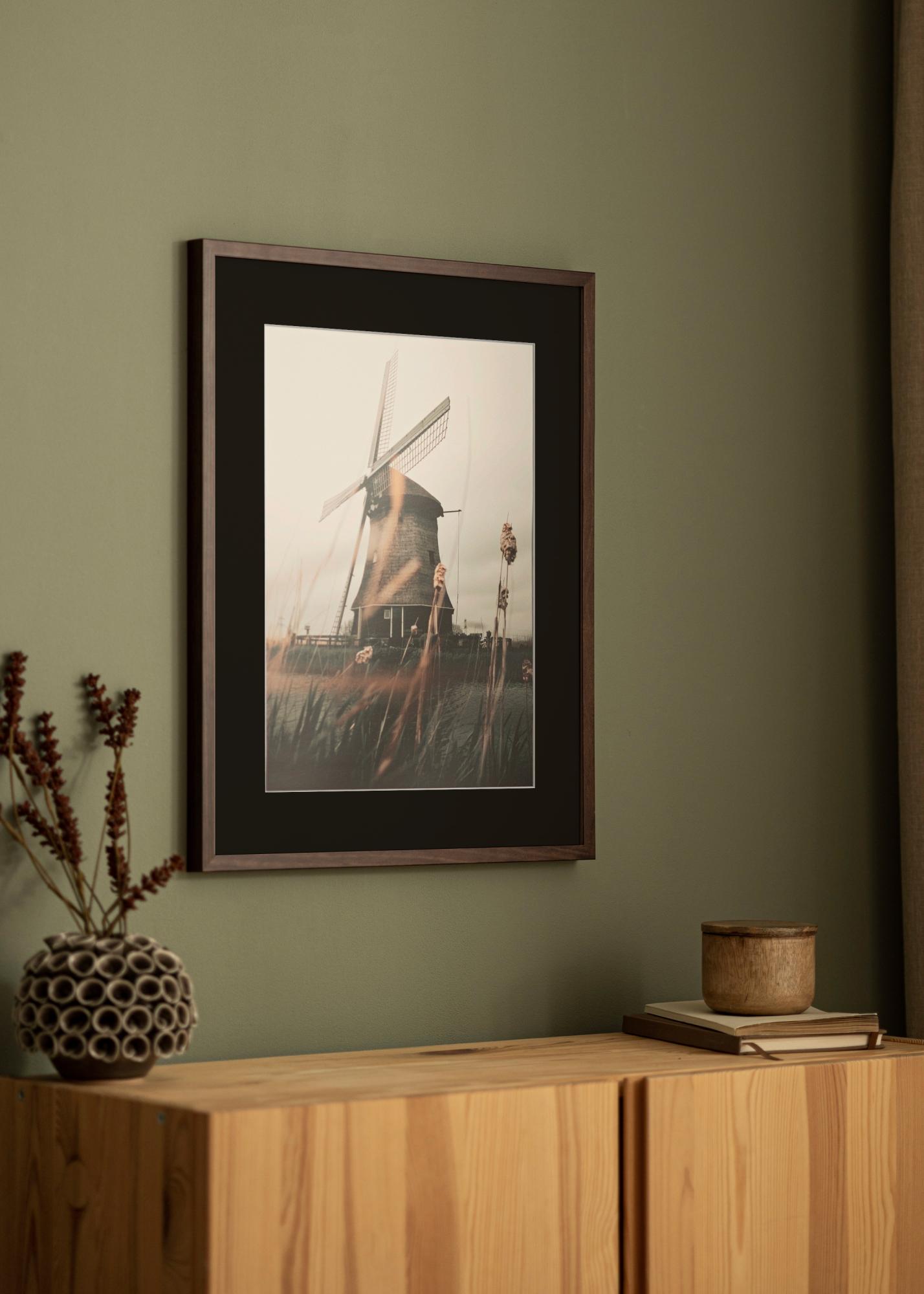 Zažite eleganciu s dreveným rámom v matnom prevedení, ktorý štýlovo orámuje vaše obrázky vo veľkosti 20x28 cm. Čierna pasparta dodáva hĺbku a sofistikovane zvýrazňuje motív.
