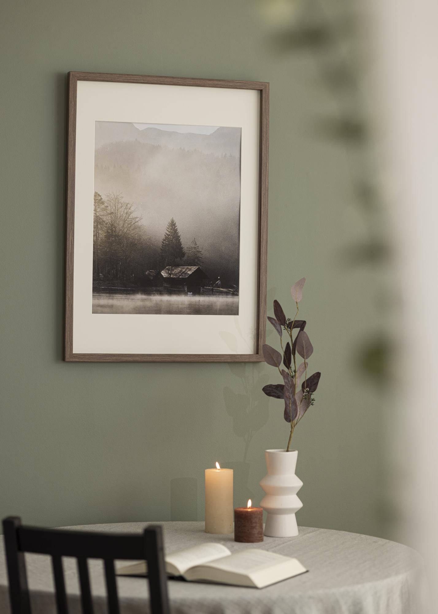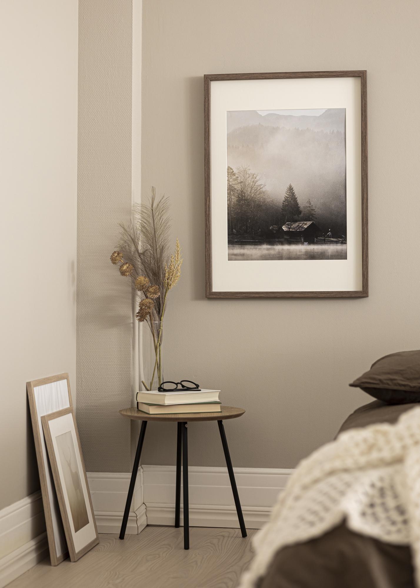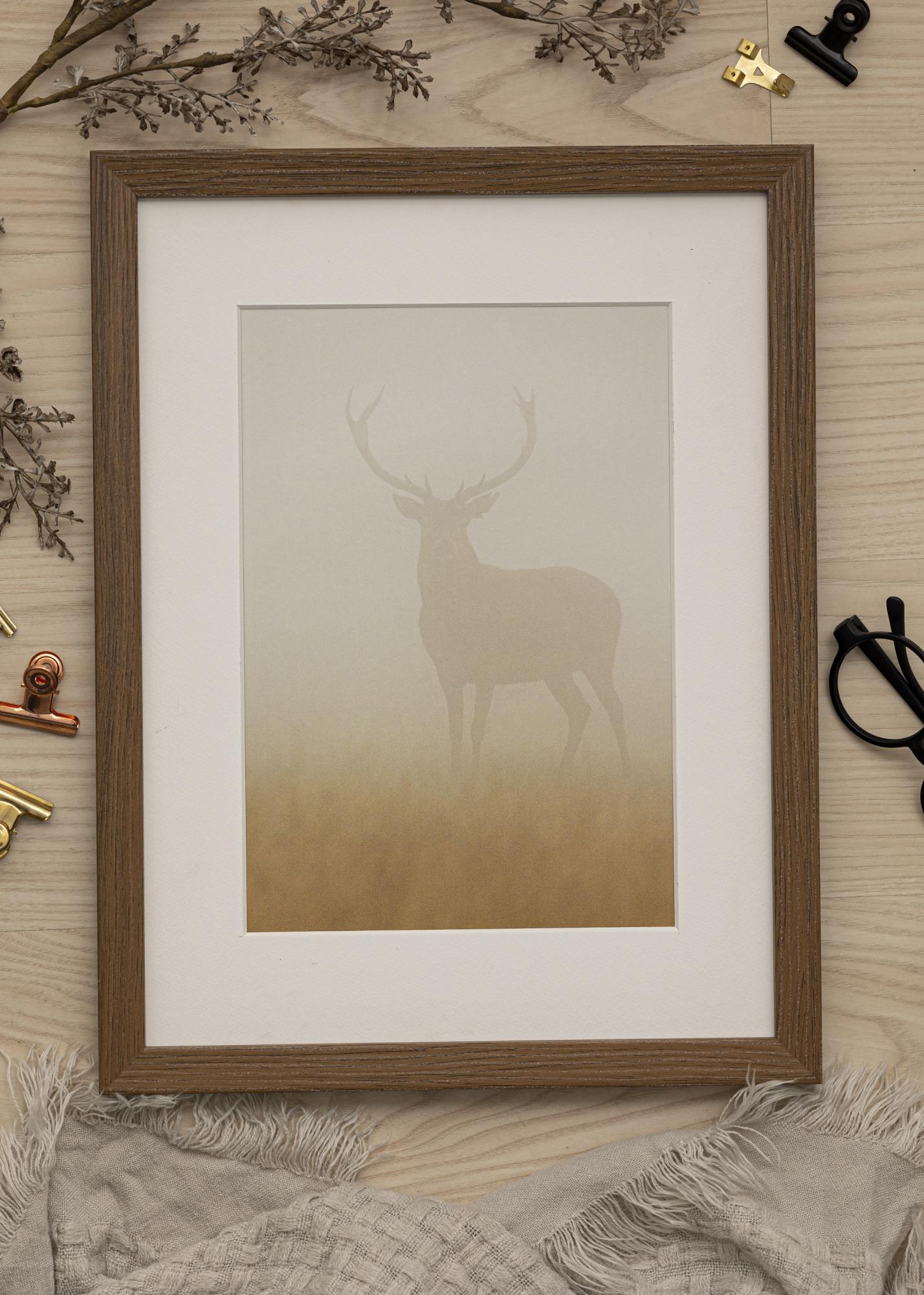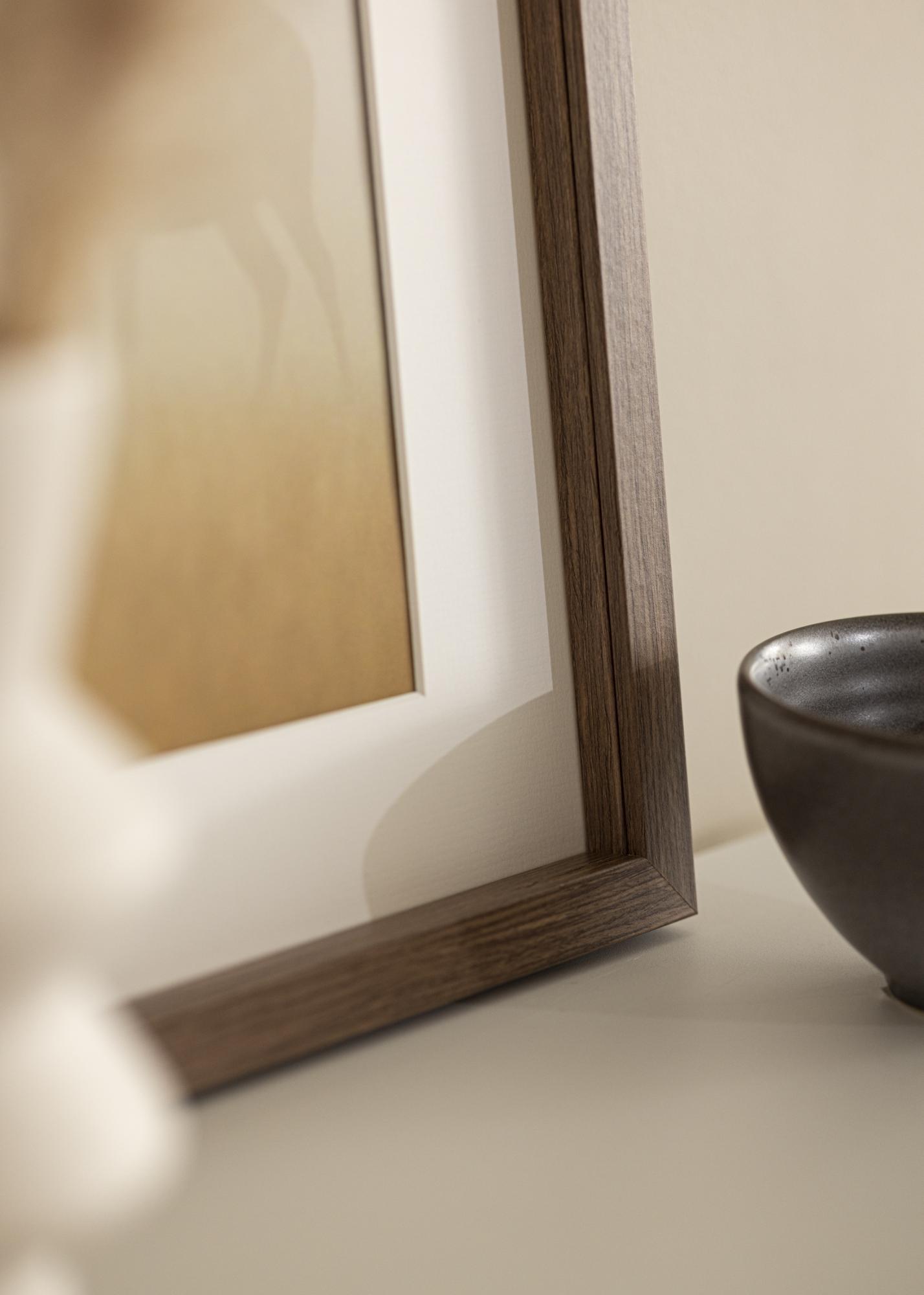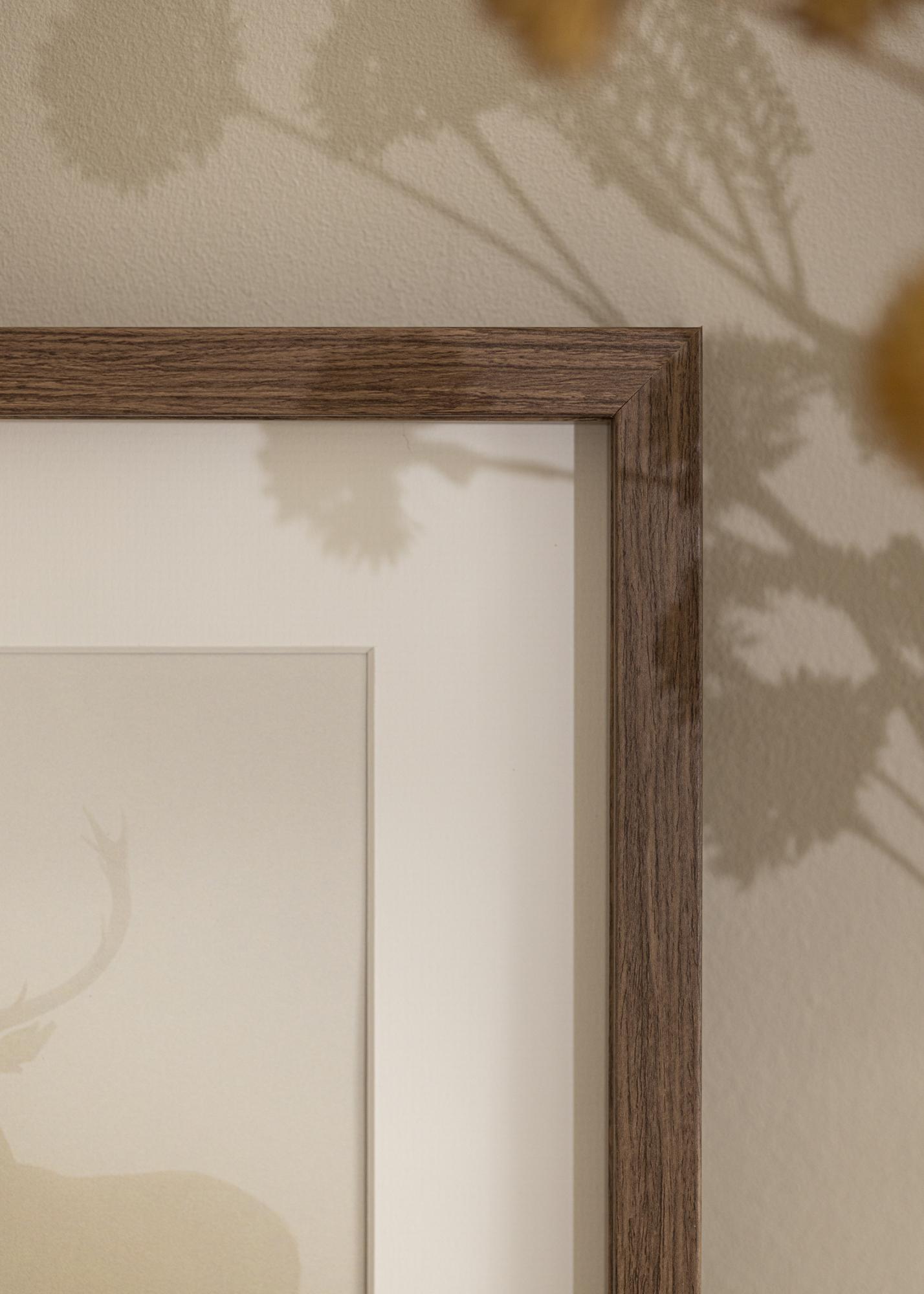 Elegantný box rám s žilkovanou hnedou drevenou textúrou s hĺbkou až 30 mm. K rámu je dodávaná aj dištančná lišta, ktorá vám umožňuje jednoducho orámovať iné veci ako obrázky, napríklad futbalový dres. To robí z "Elegant Box Hnedý" rám s mnohými možnosťami. K rámu je dodávané aj biele passepartout.