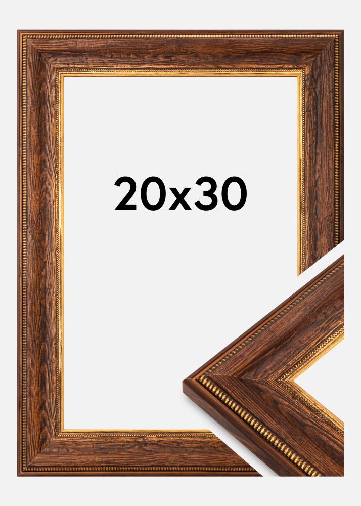 Táto elegantný rám vo veľkosti 20x30 cm je dokonalou kombináciou rustikálneho šarmu a klasickej elegancie. Vyrobená z vysokokvalitného dreva, rám má hlbokú hnedú farbu s dekoratívnymi zlatými detailmi pozdĺž vnútornej hrany. Štruktúra dreva je jasne viditeľná a dodáva teplý a prírodný pocit, zatiaľ čo zlaté prvky pridávajú sofistikovaný dotyk, ktorý skvele ladí v tradičných a vintage inšpirovaných interiéroch.