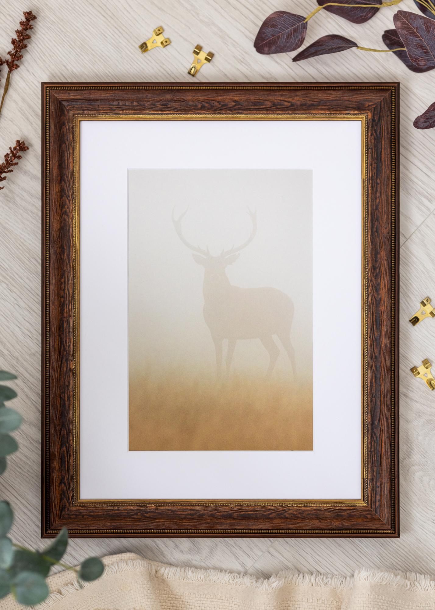 Táto elegantný rám vo veľkosti 42 x 59,4 cm je dokonalou kombináciou rustikálneho pôvabu a klasickej elegancie. Vyrobený z vysoko kvalitného dreva v Taliansku, Táto rám má hlbokú a teplú hnedú farbu, ktorá zvýrazňuje prirodzenú štruktúru dreva. Dekoratívne zlaté detaily pozdĺž vnútornej hrany pridávajú sofistikovaný nádych, ktorý dopĺňa tradičné aj vintageinšpirované interiéry.