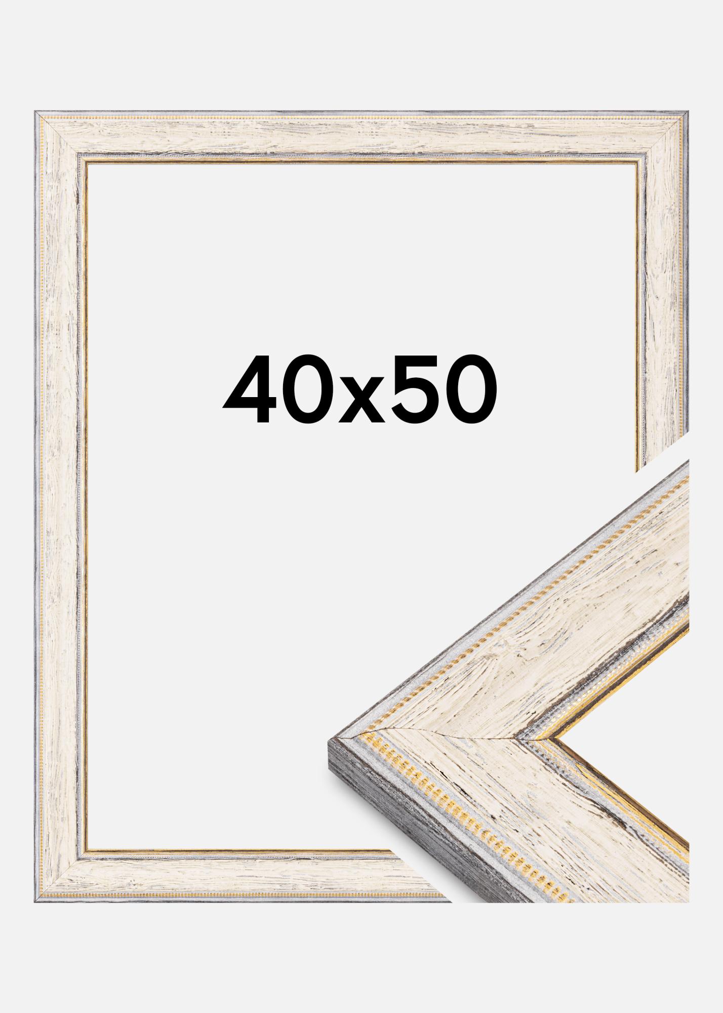 Táto elegantný rám je dokonalou kombináciou vintage inšpirácie a modernej funkčnosti. S rozmermi 40x50 cm je ideálny na zvýraznenie vašich obľúbených fotografií alebo umeleckých diel. Rám je vyrobený z dreva a má krásnu, rustikálnu bielu a sivú povrchovú úpravu, ktorá mu dodáva pôvabný starožitný vzhľad. Jemné zlaté detaily pozdĺž vnútornej hrany dodávajú klasický nádych, ktorý výborne zapadá do vidieckeho a shabby chic interiéru.