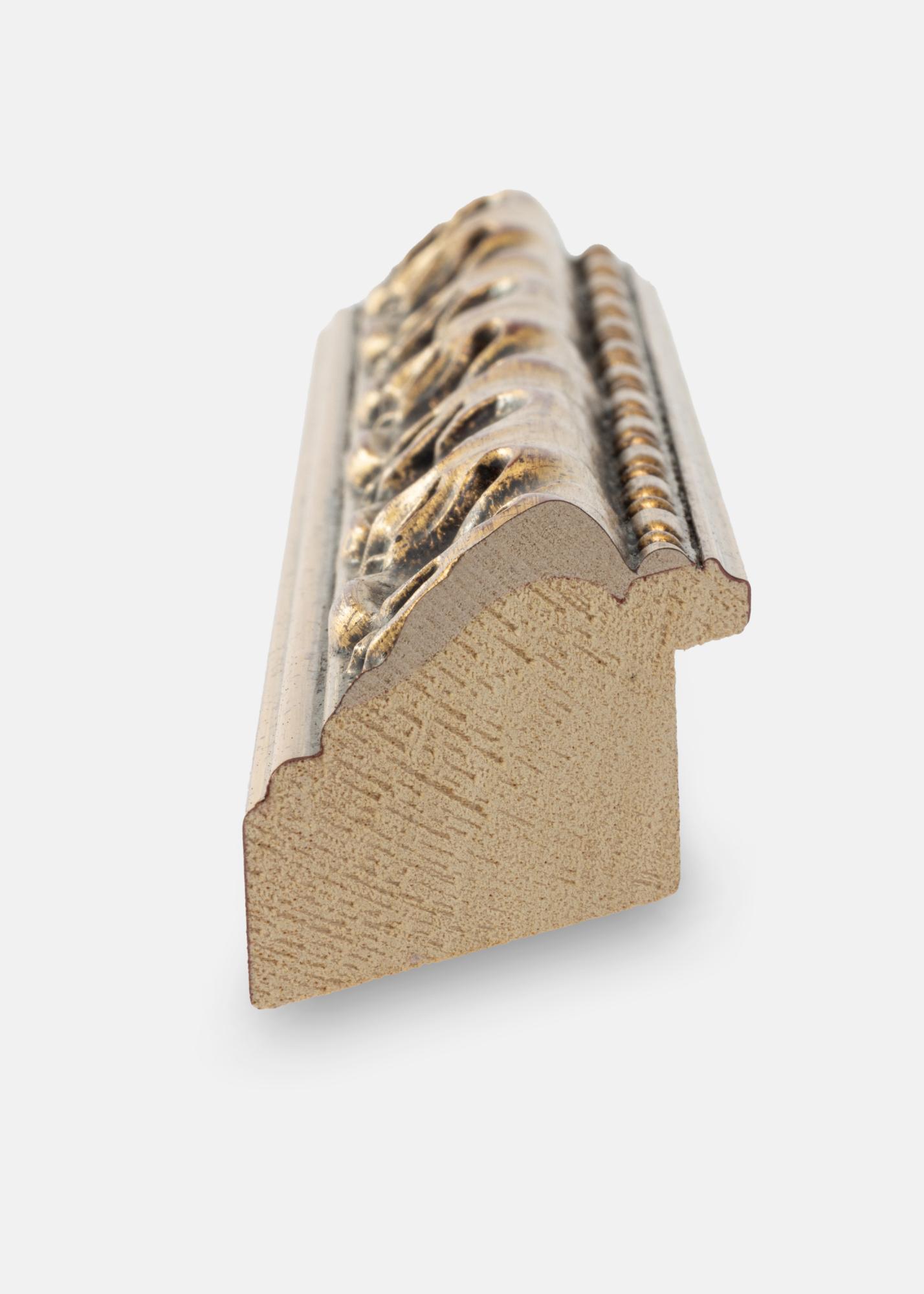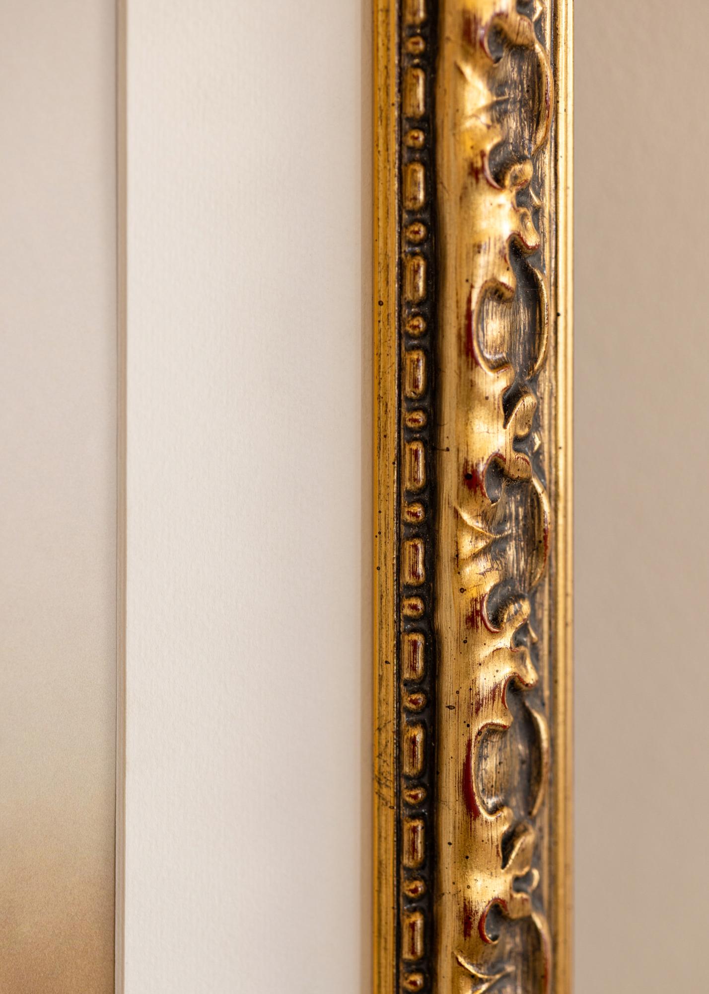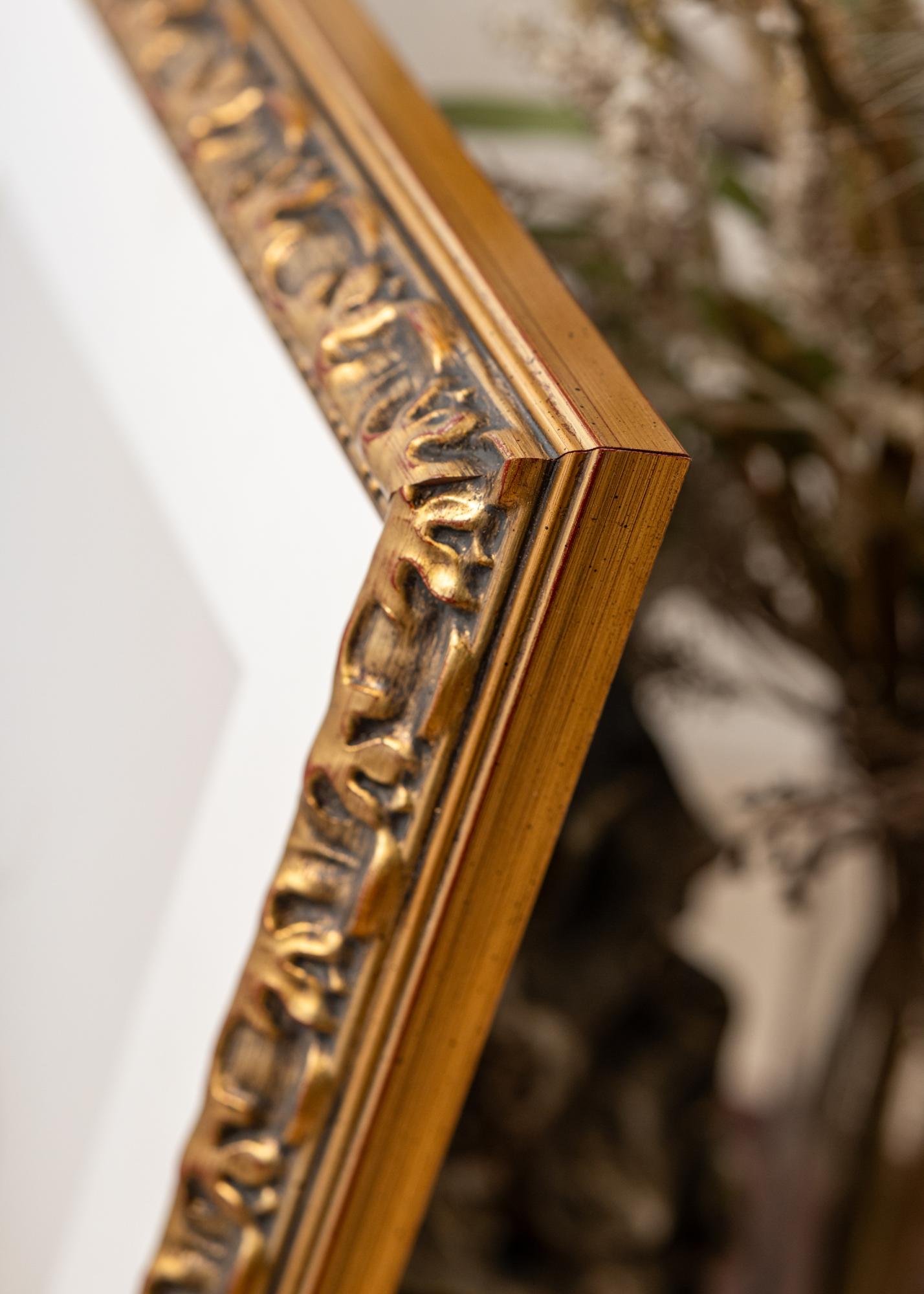 Rám Freyja Zlatý je elegantný a štýlový fotorám, ktorý dodáva vašim fotografiám luxusný vzhľad. So svojím zlatým povrchom a zložitými ornamentami sa stáva pútavým prvkom v každej miestnosti. Starobylý vzhľad, s tmavými patinovanými detailmi a jemnými červenými nádychmi, posilňuje rustikálny charakter rámu a dodáva mu nadčasový šarm.