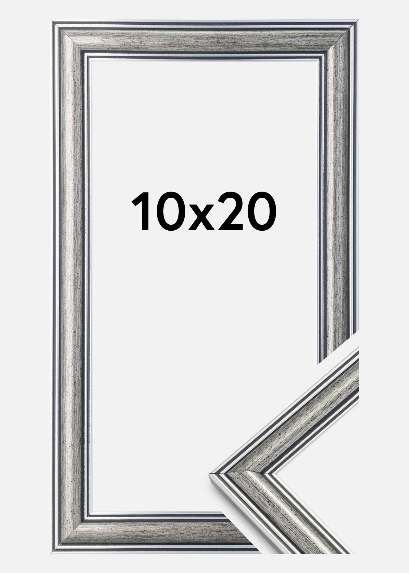 Frigg je strieborný rám s čiernymi líniami a čiernymi škvrnami. Hodí sa výborne, keď hľadáte široký tradičný strieborný rám, ktorý je vhodný pre mnoho typov obrázkov a prostredí.