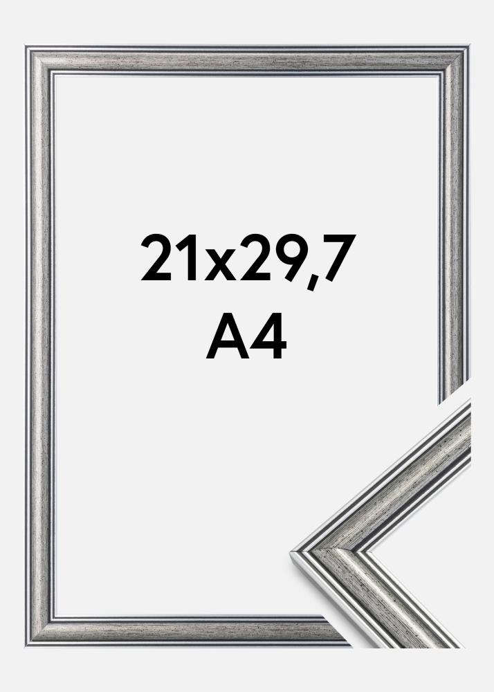 Frigg je strieborný rám s čiernymi líniami a čierno škvrnitými prvkami. Vynikajúca voľba, keď hľadáte široký tradičný strieborný rám vhodný pre mnoho typov obrázkov a prostredí.