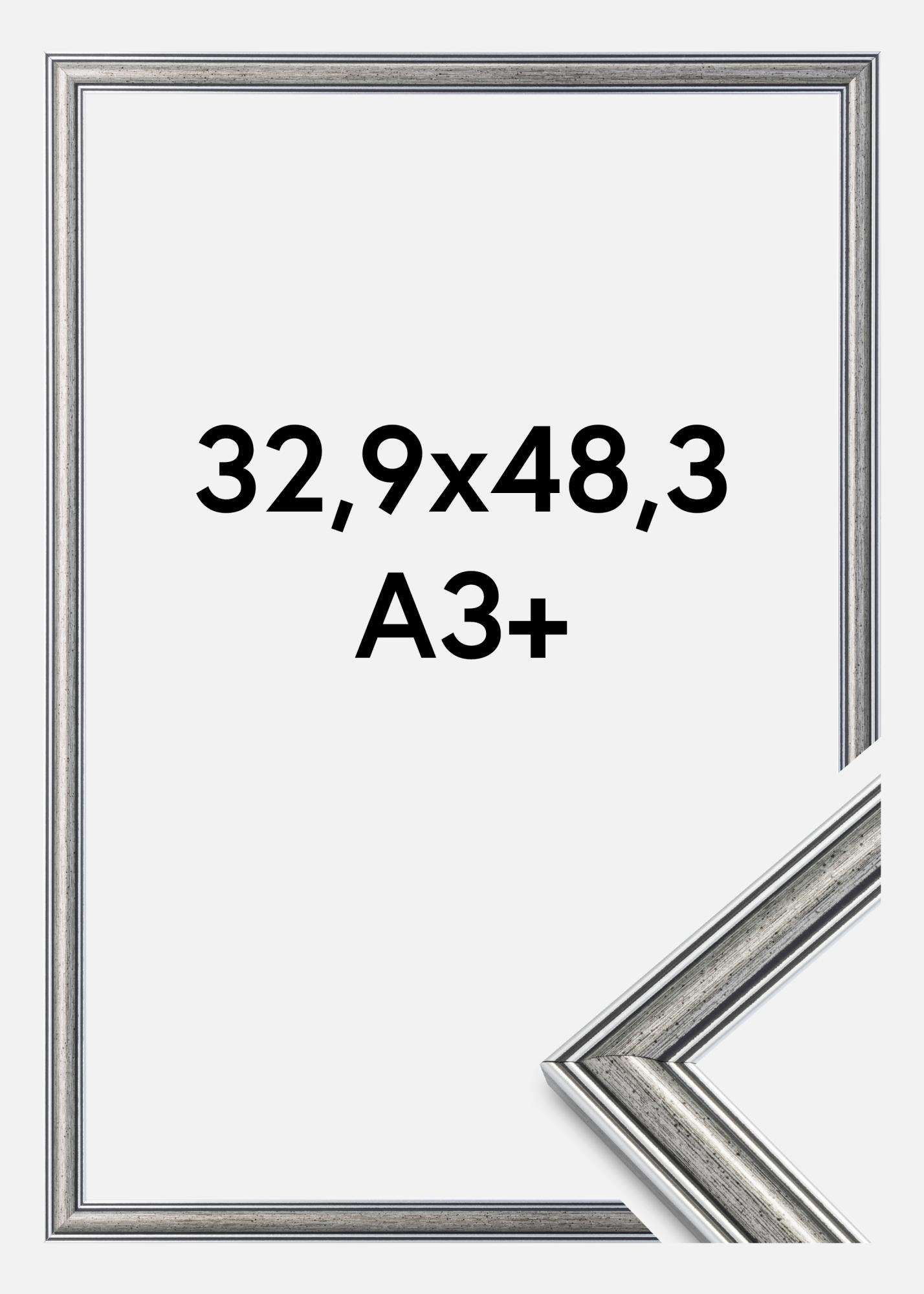 Frigg je strieborný rám s čiernymi čiarami a čiernoškvrnitými prvkami. Skvele sa hodí, keď hľadáte široký tradičný strieborný rám vhodný na mnohé typy obrázkov a prostredí.