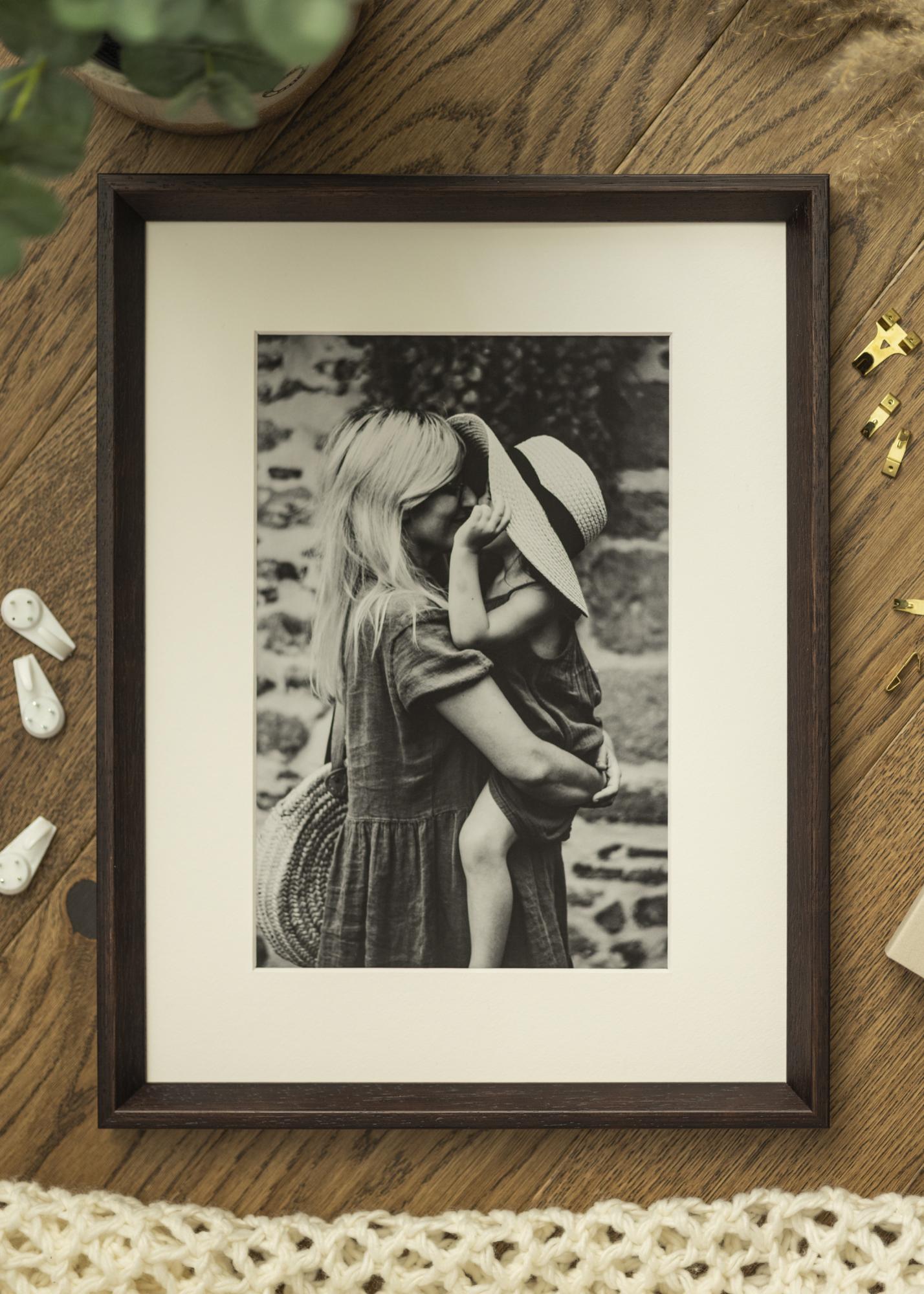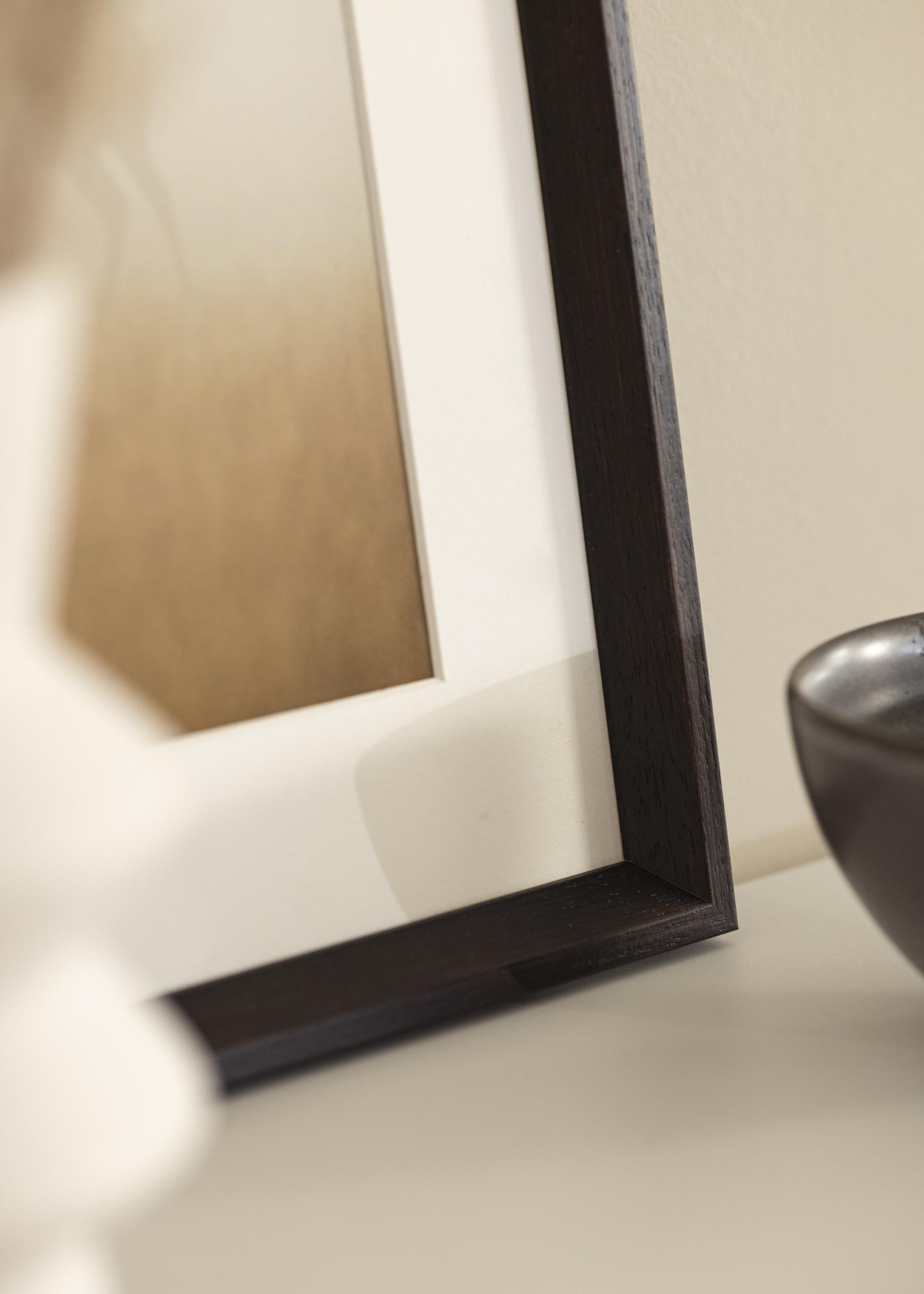 Globe akrylové sklo Espresso dodáva vašim obrázkom veľmi sofistikovaný rám. Rám je vyrobený vo Švédsku z pevného ayosového dreva, natretý na príjemný espressovohnedý odtieň s elegantným lesklým povrchom. Špeciálny dizajn, s 20 mm širokou drevenou lištou so 45° hranou smerom k motívu, dodáva rámu veľmi štýlový výraz. Farba spolu so sofistikovaným dizajnom zabezpečuje, že rám sa hodí vynikajúco ako samostatný, tak aj v kombinácii s inými rámami v rôznych vyhotoveniach.