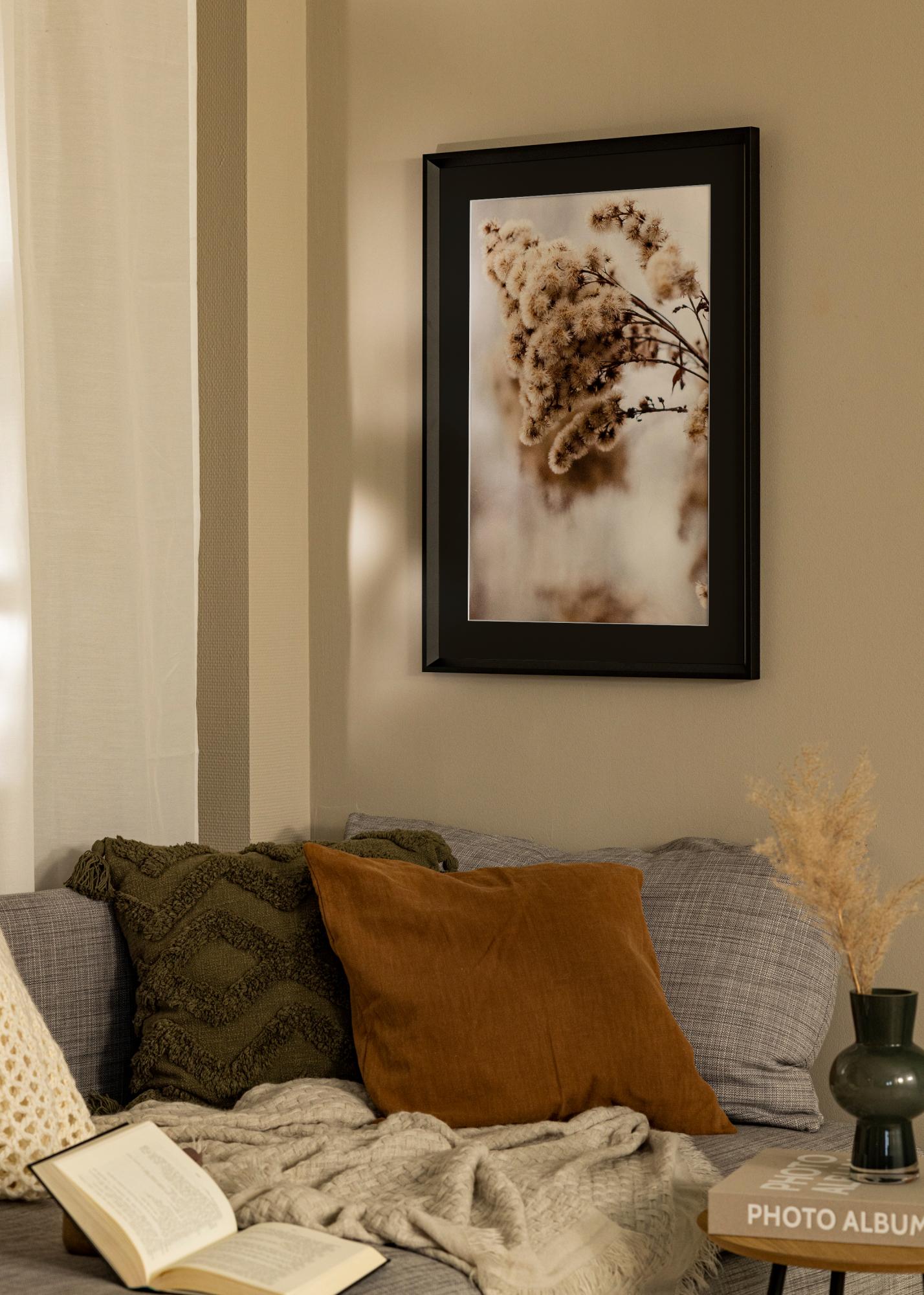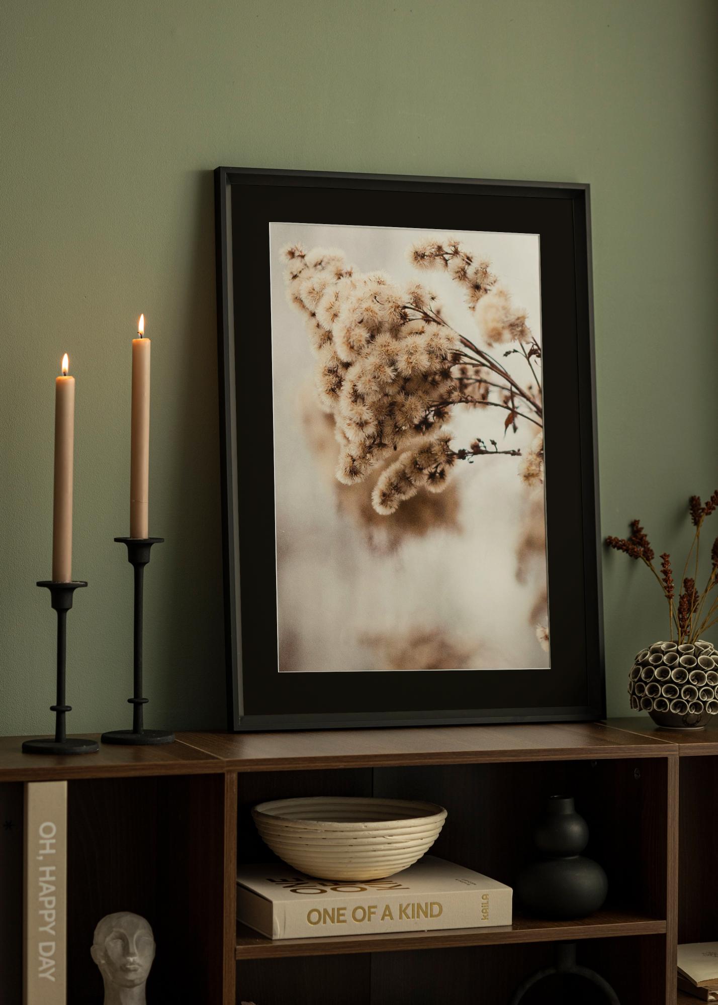 Rám je vybavený zodpovedajúcim čiernym passepartoutom, ktorý zvyšuje kontrast a zameriava pozornosť diváka na motív. Navyše je rám vybavený praktickými kovovými závesmi na jednoduché zavesenie.