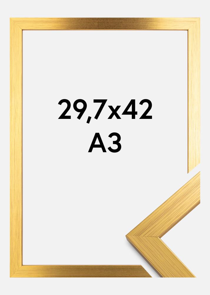Objavte elegantný a štýlový 29,7x42 cm (A3) zlatý rám, dokonalý pre rámovanie vašich umeleckých diel a fotografií vo formáte A3. S klasickým zlatým tónom, tento fotorám pridáva luxusný pocit ku každému obrazu, ktorý objíme. Vyrobený vo Švédsku, tento rám kombinuje tradičné remeselné spracovanie s moderným dizajnom.
