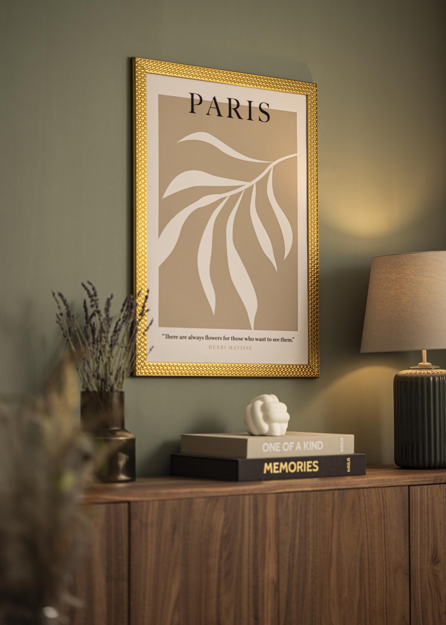 Rám má lesklý povrch a je vybavený bielym paspartom, ktorý zdôrazňuje váš obrázok. Vonkajšie rozmery sú 45,8x55,8 cm.