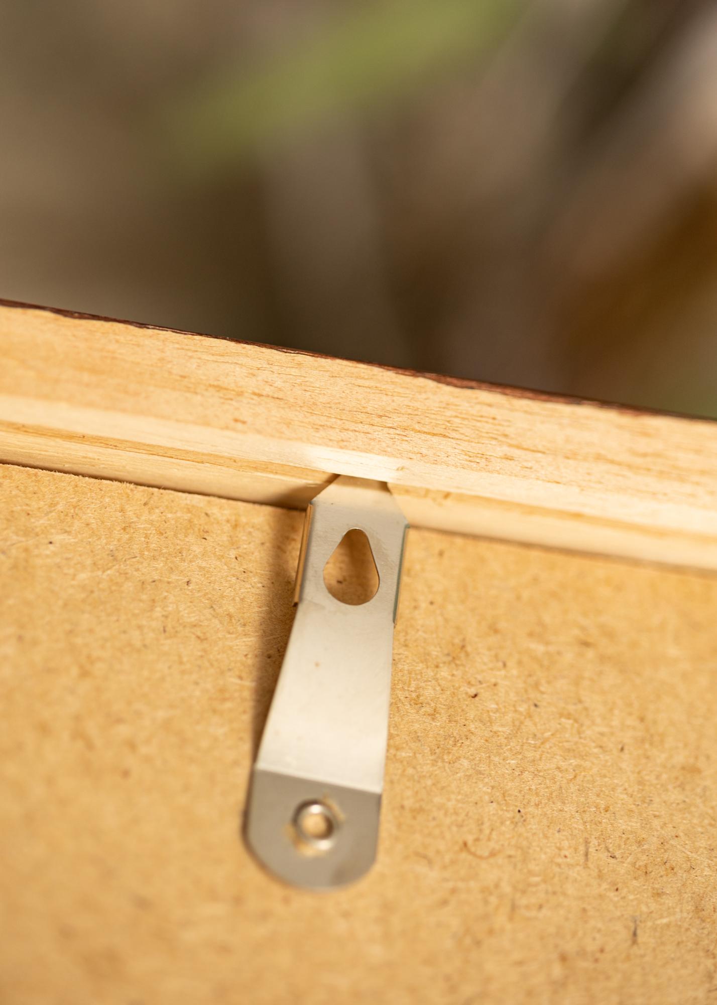 Rám je vybavený praktickými kovovými závesmi na zadnej strane, čo umožňuje zavesiť ho horizontálne aj vertikálne. To vám poskytuje flexibilitu prispôsobiť umiestnenie vášmu priestoru a štýlu interiéru. Šírka rámu je 19,6 mm a hĺbka je 25 mm, čo mu dáva výrazný a robustný vzhľad.