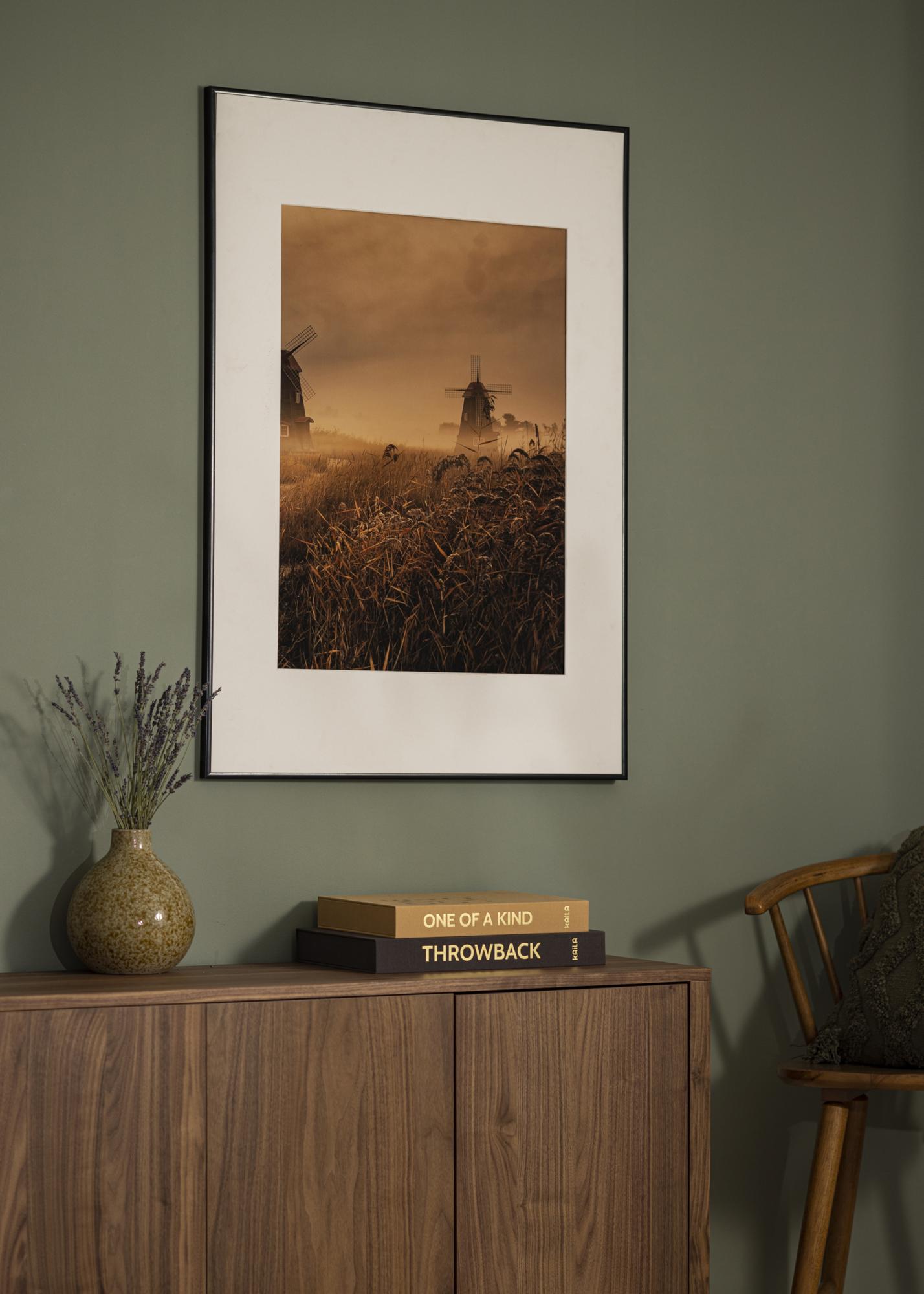 Akrylátové sklo v ráme má ochrannú fóliu na oboch stranách, ktorú je možné jednoducho odstrániť pred použitím, čo zaručuje, že váš motív bude prezentovaný bez škrabancov alebo prachu. S profilom iba 9 mm sa rám stáva diskrétnym, no stále prítomným detailom na vašej stene.