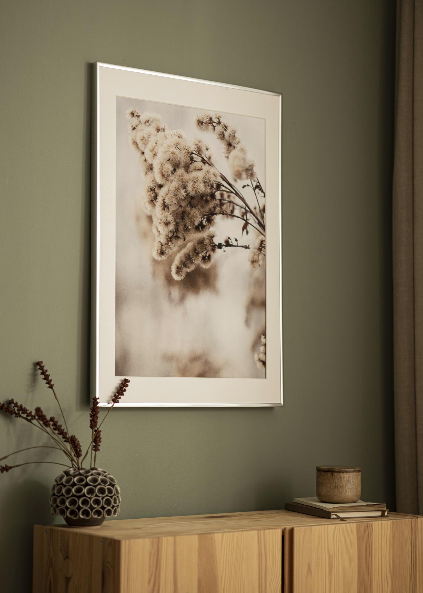 Tento strieborný rám nie je len štýlovým interiérovým prvkom, ale aj praktickým. Je vybavený krištáľovo čistým a nerozbitným akrylovým sklom, ktoré efektívne chráni váš motív. Akrylové sklo má na oboch stranách ochrannú fóliu na zabezpečenie bezchybnosti pri dodaní - nezabudnite fóliu pred použitím odstrániť.
