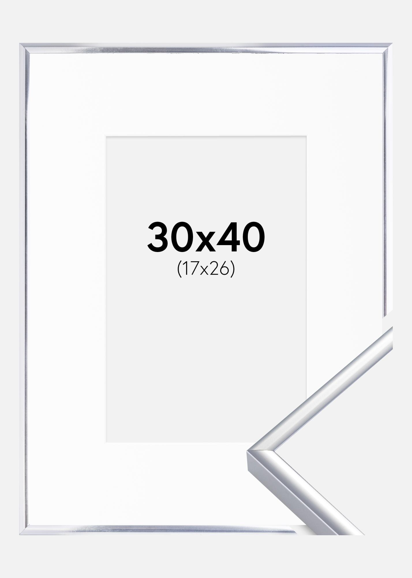 Rám Hliník Strieborný lesklý 30x40 cm - Pasparta Biela 18x27 cm