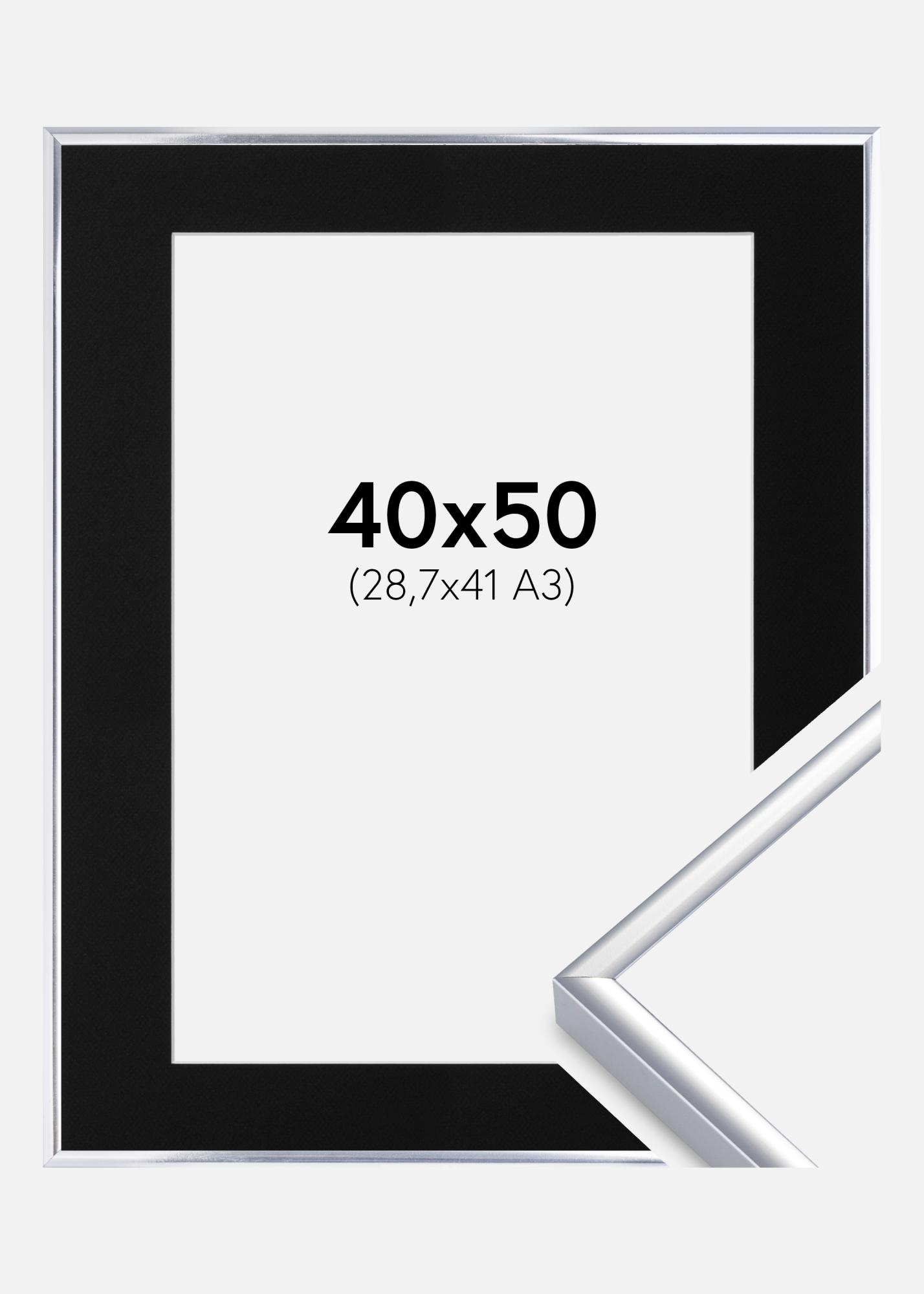 Rám Hliník Strieborný lesklý 40x50 cm - Pasparta Cierna 29,7x42 cm (A3)