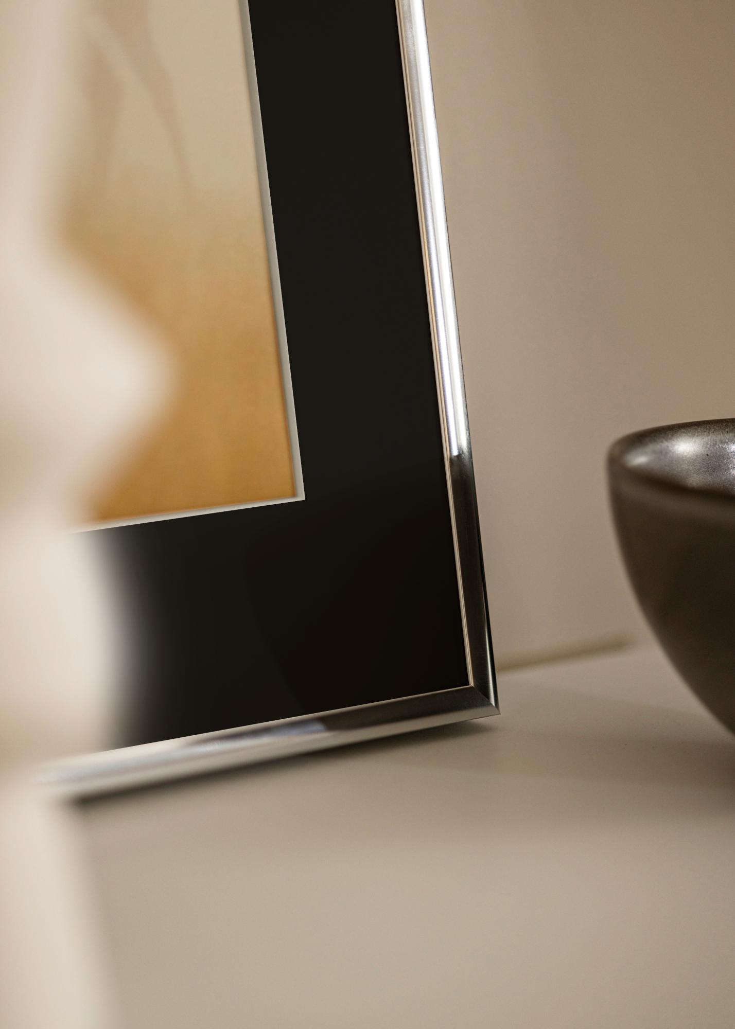 Rám má lesklý povrch, ktorý jemne odráža svetlo, čím pridáva dodatočnú dimenziu vášmu interiéru. S profilom rámu širokým 9 mm a hlbokým 19 mm, je rám zároveň diskrétny a výrazný. Je vybavený kovovými závesmi na zadnej strane, čo umožňuje jednoducho zavesiť váš obrázok buď horizontálne alebo vertikálne, v závislosti od vášho priestoru a vašej dizajnovej vízie.