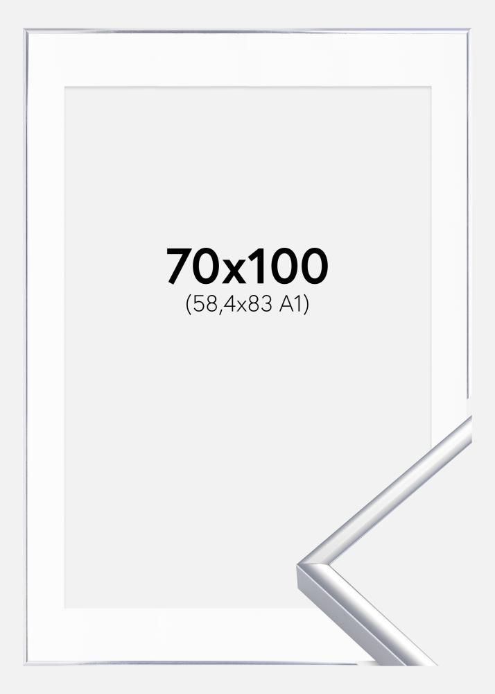 Rám Hliník Strieborný lesklý 70x100 cm - Pasparta Biela 59,4x84 cm (A1)