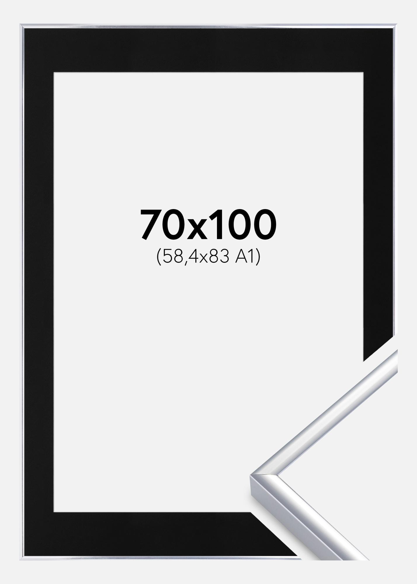 Rám Hliník Strieborný lesklý 70x100 cm - Pasparta Cierna 59,4x84 cm (A1)