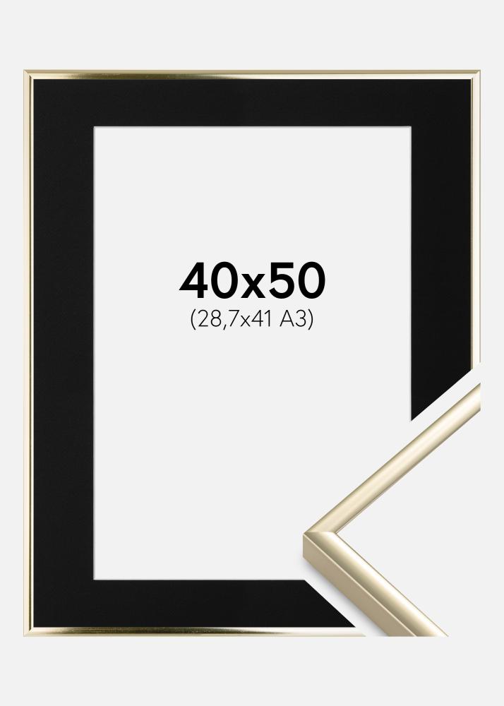 Povýšte svoje umenie a dodajte svojmu domovu dotyk elegancie s naším zlatým rámom s čiernym passepartout. Tento sofistikovaný rám je ideálny na zdôraznenie vašej A3 fotografie (29,7x42 cm) a jeho 9 mm široký, lesklý zlatý profil pridáva vášmu priestoru luxusný pocit. Passepartout nielenže posilňuje umelecké dielo tým, že vytvára vizuálnu prestávku medzi rámom a obrázkom, ale tiež prispieva k ochrane obrázka pred dotykom so sklom.