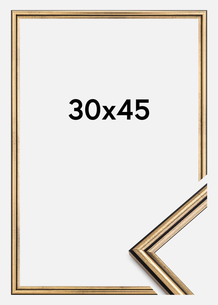 Dodajte svojim obľúbeným fotografiám luxusný a retro-inšpirovaný rám, ktorý dodá vášmu domovu zlatý nádych. Horndal je rám vyrobený vo Švédsku s čiernoškvnitou zlatou farbou a matnou povrchovou úpravou. Čiernoškvrnitý odtieň dodáva rámu decentnejší vzhľad, ktorý kladie dôraz na vaše motívy. Lišta rámu je vyrobená z natretého dreva ayos a má tenkú a elegantnú šírku iba 15 mm.