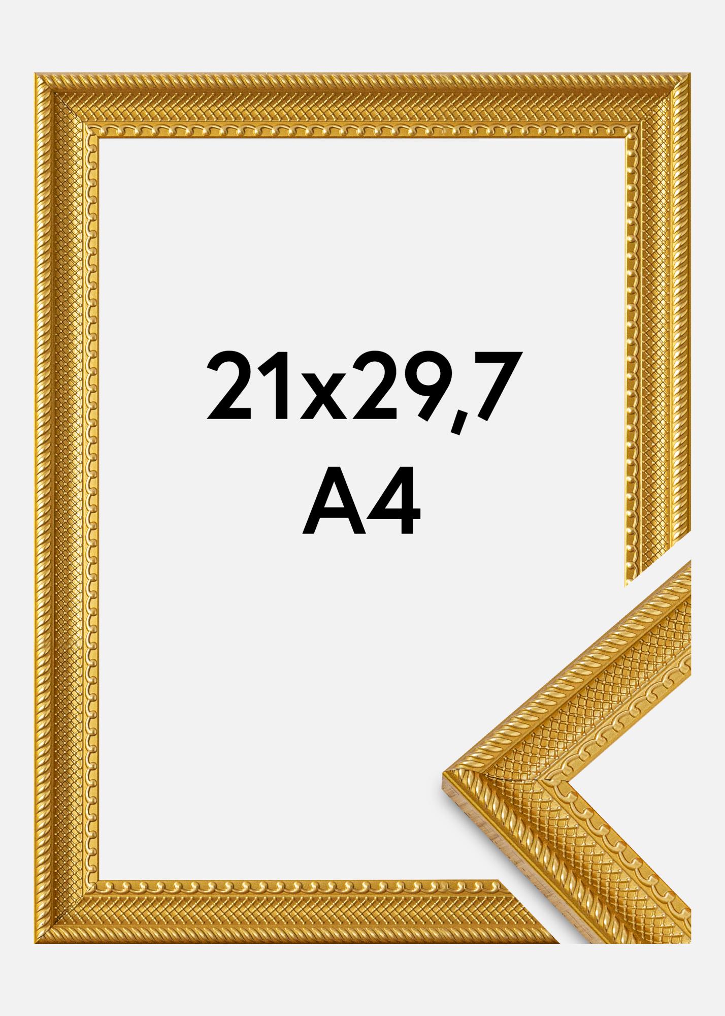 Táto elegantný zlatá rám je dokonalou kombináciou klasického dizajnu a modernej funkčnosti. So svojimi detailnými vzormi pozdĺž okrajov a lesklou povrchovou úpravou poskytuje luxusný pocit, ktorý zvýrazňuje každé umelecké dielo alebo fotografiu. Rám je vyrobený z kompozitného materiálu, čo mu dáva silu aj ľahkosť. Je navrhnutý tak, aby vyhovoval motívom vo veľkosti 21x29,7 cm (A4), vďaka čomu je ideálny na štýlové vystavenie vašich obľúbených spomienok.