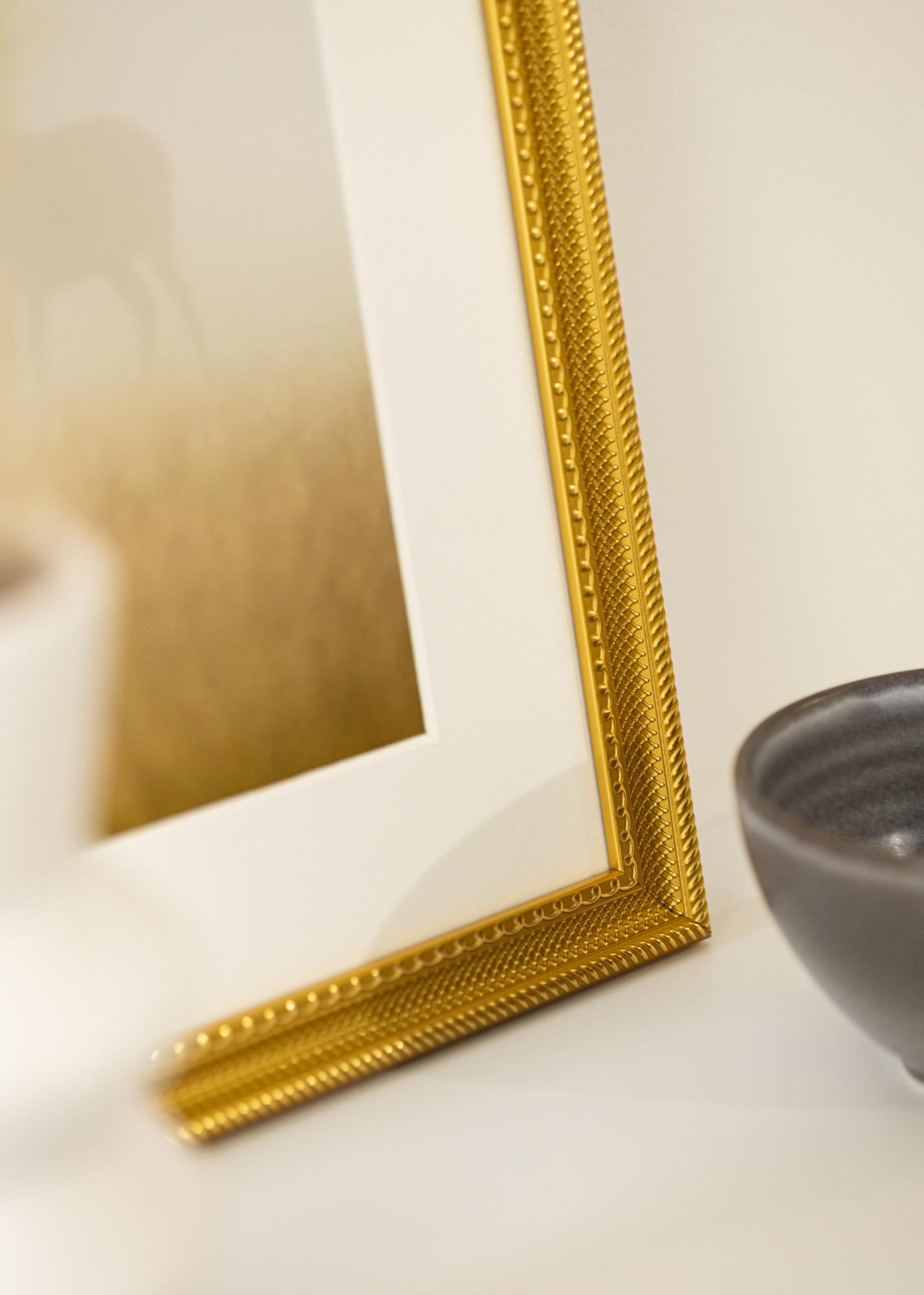 Táto elegantný zlatá rám je dokonalou kombináciou klasického dizajnu a modernej funkčnosti. S detailnými vzormi pozdĺž okrajov a lesklým povrchom poskytuje luxusný pocit, ktorý zvýrazní každé umelecké dielo alebo fotografiu. Rám je vyrobený z kompozitného materiálu, čo mu poskytuje pevnosť i ľahkosť. Je navrhnutý tak, aby sa hodil na motívy veľkosti 30x40 cm, takže je ideálny na zobrazenie vašich najmilovanejších spomienok.