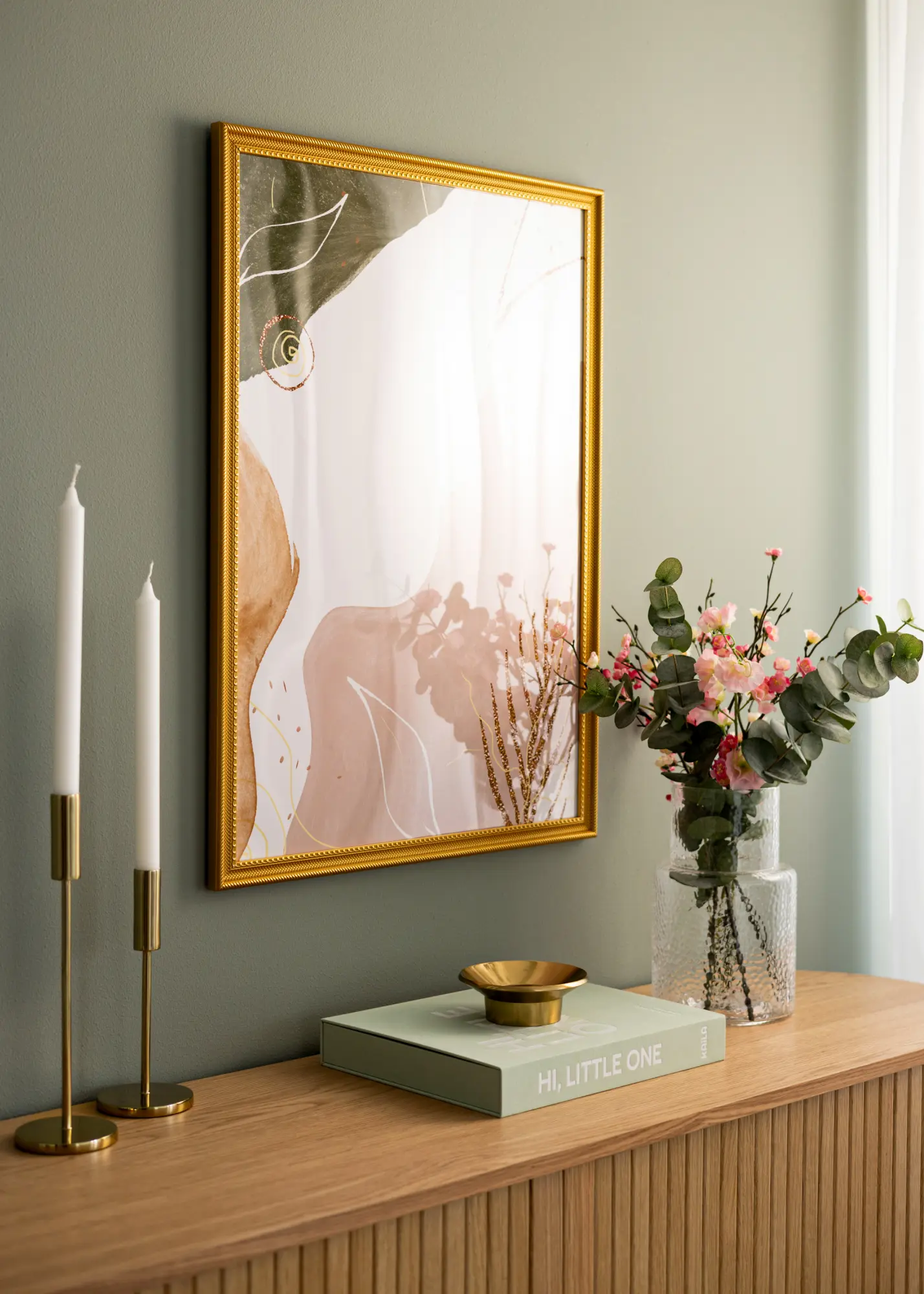 Táto elegantný zlatý rám je dokonalou kombináciou klasického dizajnu a modernej funkčnosti. S jeho detailnými vzormi pozdĺž okrajov a lesklým povrchom dodáva pocit luxusu, ktorý povyšuje každé umelecké dielo alebo fotografiu. Rám je vyrobený z kompozitného materiálu, čo mu dodáva silu aj ľahkosť. Je navrhnutý tak, aby vyhovoval motívom vo veľkosti 60x80 cm, čo z neho robí ideálnu voľbu pre väčšie obrázky alebo plagáty.