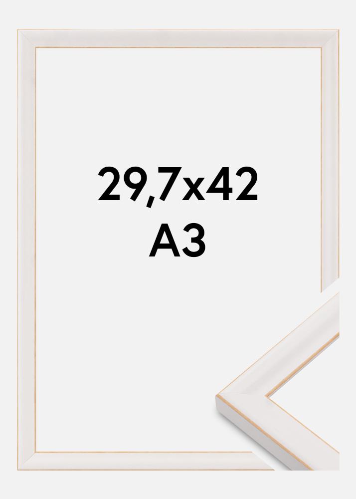 Rám je vyrobený z dreva a má 20 mm širokú rámovú lištu a hĺbku 16 mm. Jemný zlatý detail pozdĺž vnútornej hrany rámuje obraz s exkluzívnym pocitom. S rozmermi 29,7 x 42 cm je dokonale vhodný pre motívy vo formáte A3. Táto rám je vybavený kovovými závesmi na zadnej strane, čo umožňuje jednoduché zavesenie horizontálne aj vertikálne podľa vašich potrieb.
