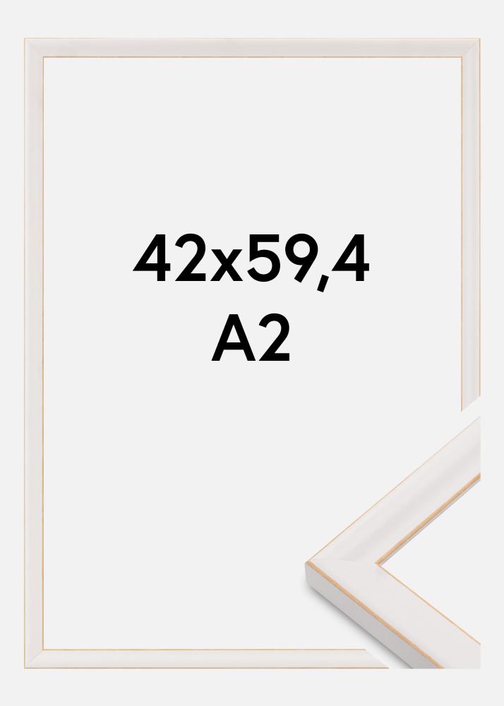 Táto elegantný rám v jemnom, krémovo-bielom odtieni s tenkým zlatým lemom je dokonalou kombináciou klasického a moderného dizajnu. S veľkosťou rámu 42 x 59,4 cm (A2) je ideálny na zvýraznenie umeleckých diel, fotografií alebo spomienok nadčasovým spôsobom. Jemný zlatý detail pozdĺž vnútornej hrany dodáva exkluzívny pocit, ktorý orámuje vaše obrázky sofistikovaným spôsobom.