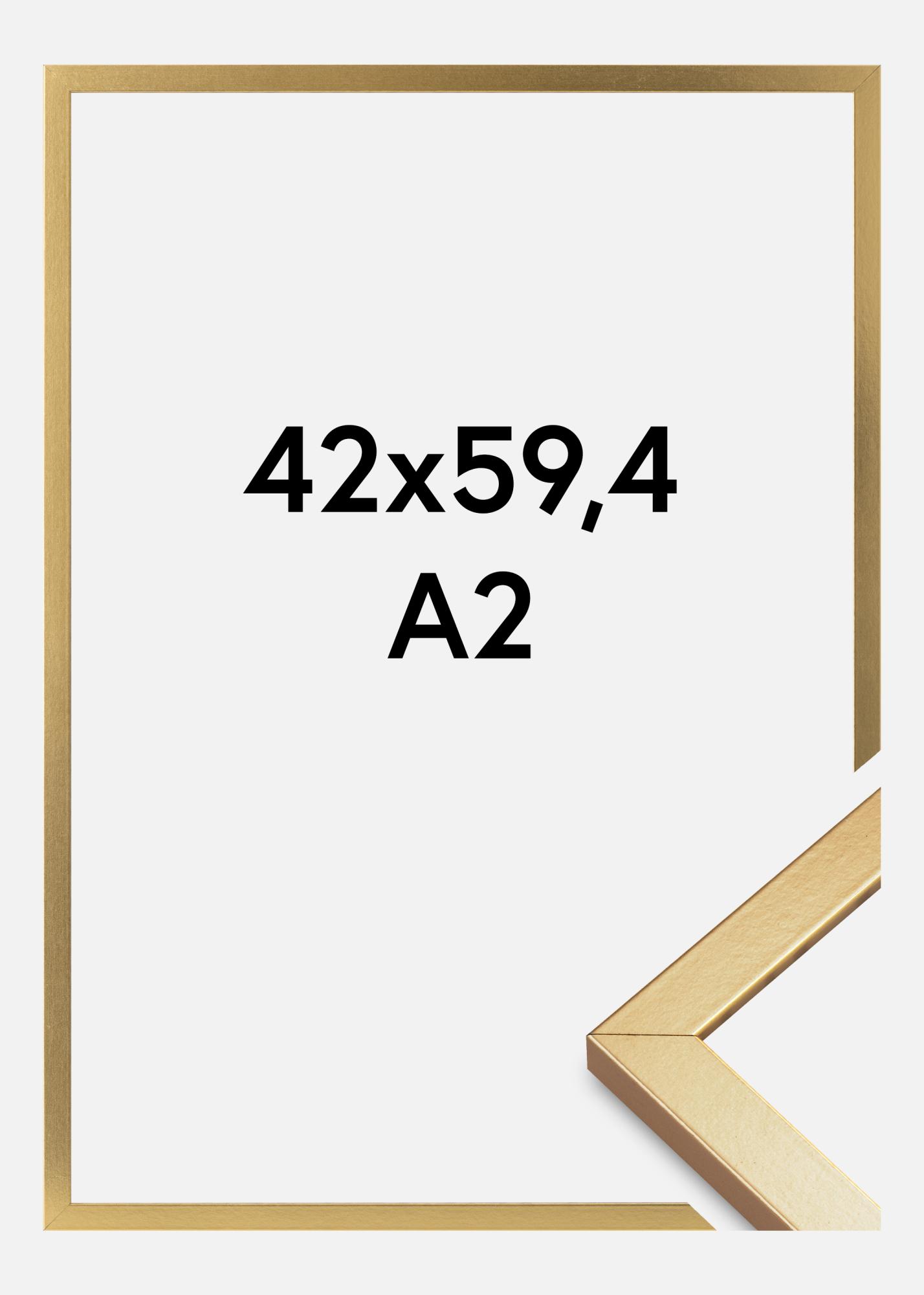 Dodajte svojim plagátom a umeleckým dielam nádych elegancie s týmto zlatým rámom vo veľkosti 42x59,4 cm (A2). Úzka lišta rámu s hrúbkou 15 mm poskytuje jemné orámovanie bez toho, aby odvádzala pozornosť od motívu, zatiaľ čo hĺbka rámu 16 mm vytvára výrazný profil na vašej stene.