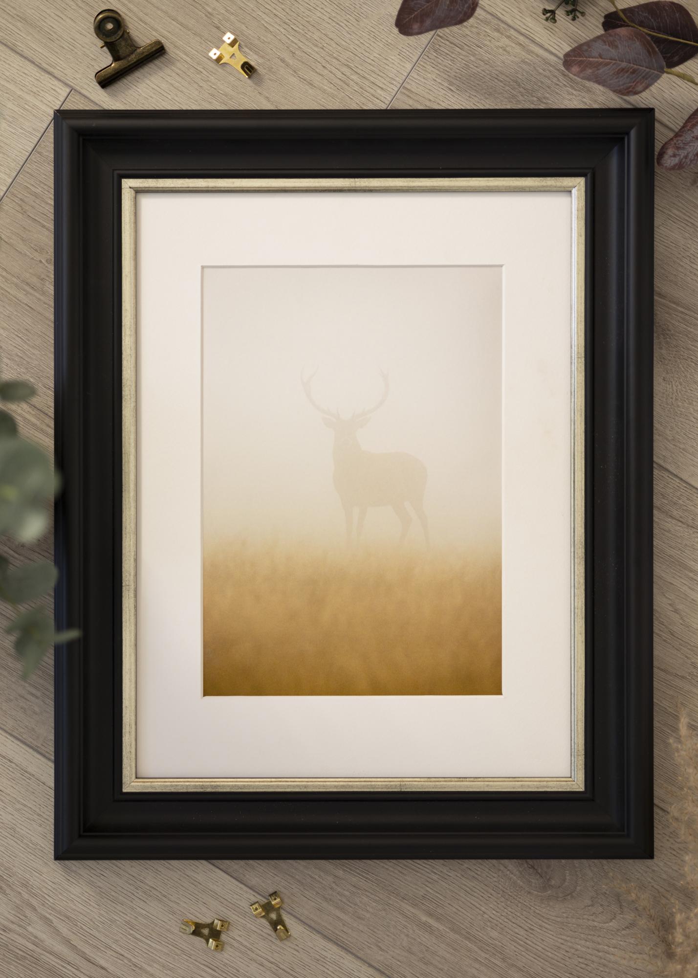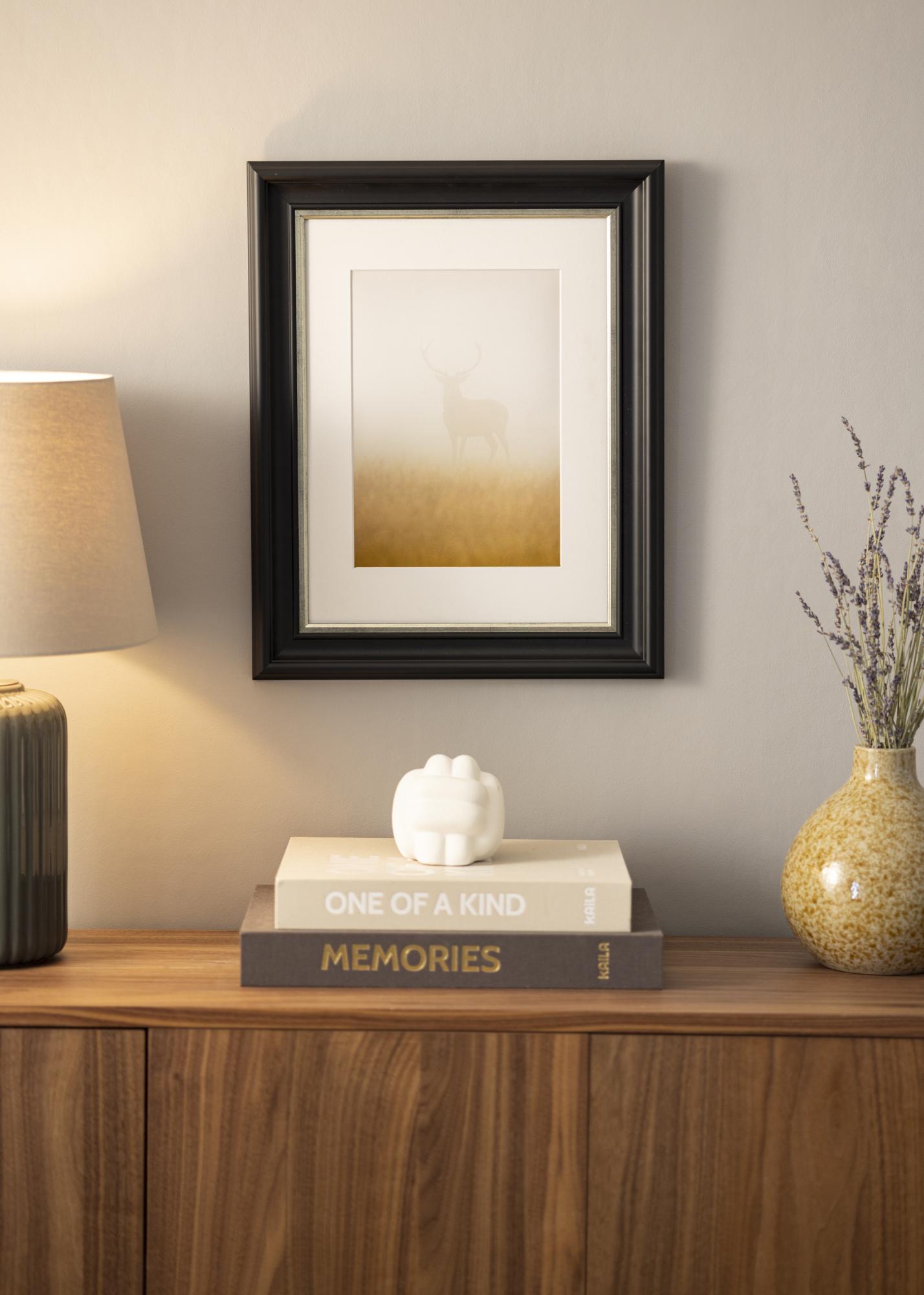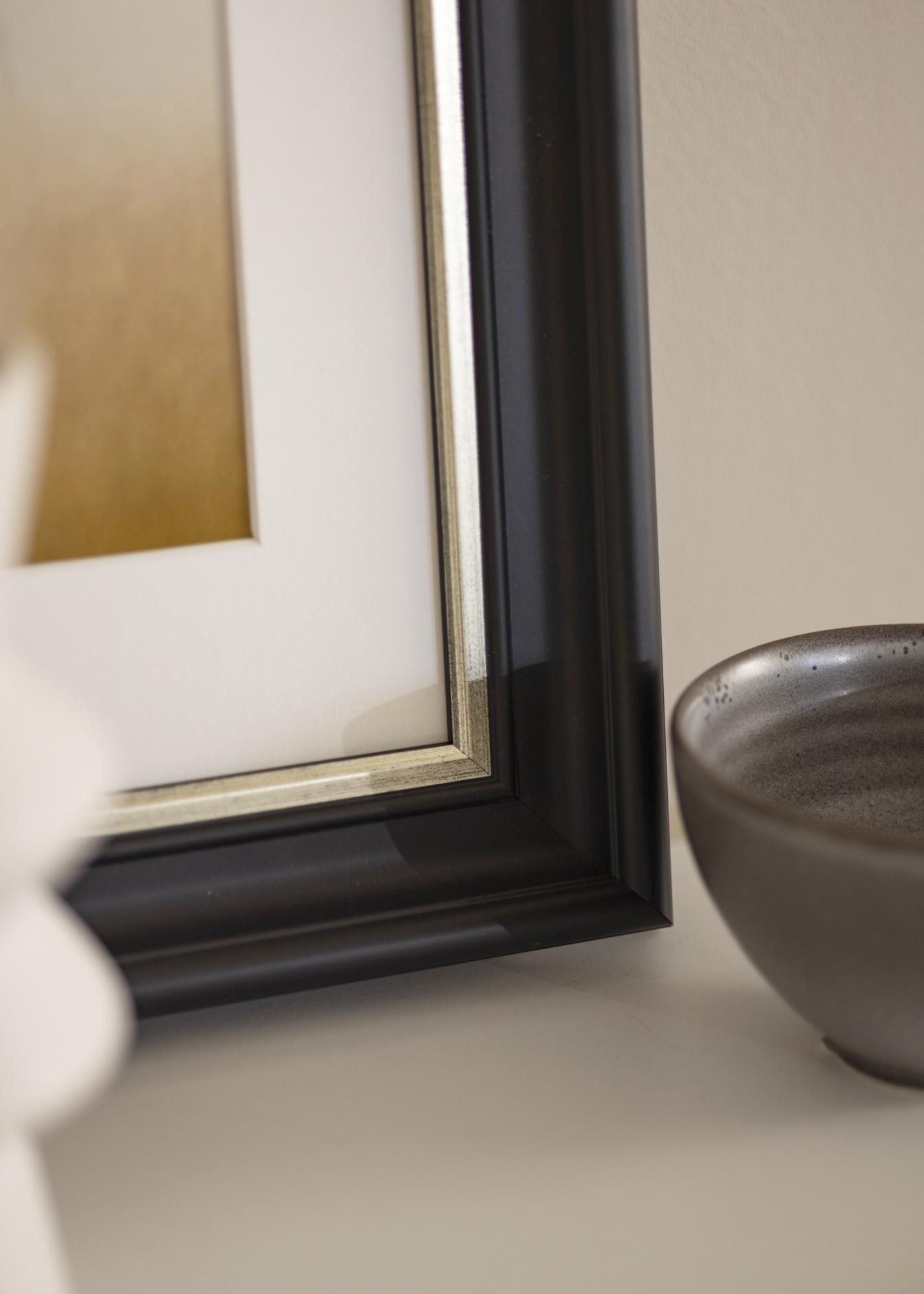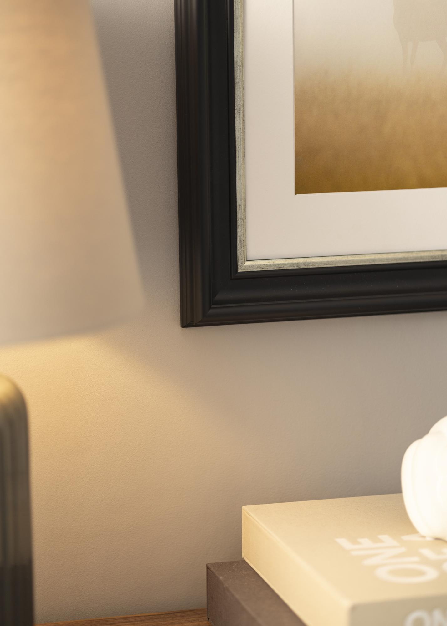 Mora Premium Čierna-Strieborná je jeden z našich najlepších rámov na obrazy. Vyrobený z dreva z našich krásnych švédskych lesov a zmontovaný v našej vlastnej rámovej dielni. To znamená, že môžeme sľúbiť kvalitu, ktorá prekonáva bežný štandard. Rám má elegantný široký čierny profil s celkovou šírkou 57 mm a tenkou striebornou brúsenou hranou tesne pri motíve. Perfektné pre vaše najlepšie fotografie!