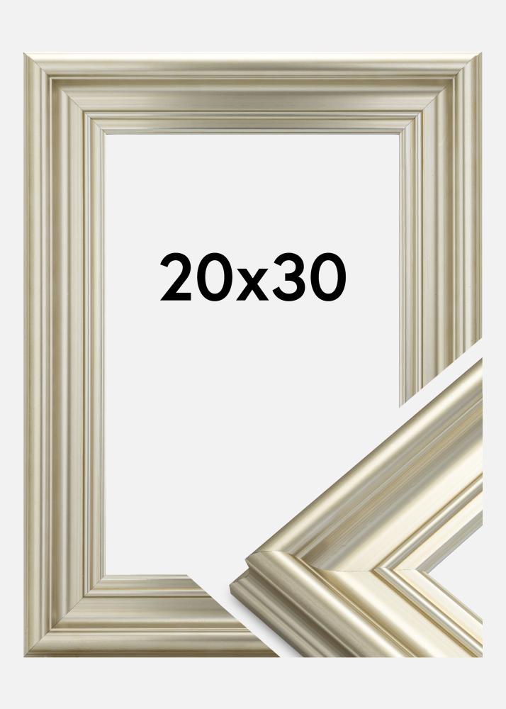 Mora Premium Silver je jeden z našich najlepších strieborných rámov. Vyrobený z dreva z našich krásnych švédskych lesov a zmontovaný v našej vlastnej dielni na rámy. To nám umožňuje sľúbiť kvalitu nad rámec bežného. Rám má mäkko strieborno zafarbený profil v starom maľovanom štýle so šírkou celých 57 mm. Perfektné pre vaše najkrajšie obrázky!