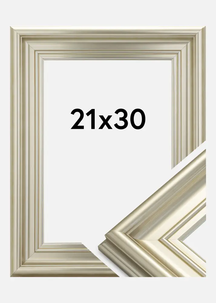 Mora Premium Silver je jeden z našich najlepších strieborných rámov. Vyrobený z dreva z našich krásnych švédskych lesov a zmontovaný v našej vlastnej rámovej dielni. To nám umožňuje sľúbiť kvalitu nad rámec bežného. Rám má mäkko strieborný profil v starom maľovanom štýle s celkovou šírkou 57 mm. Perfektný pre vaše najkrajšie fotografie!