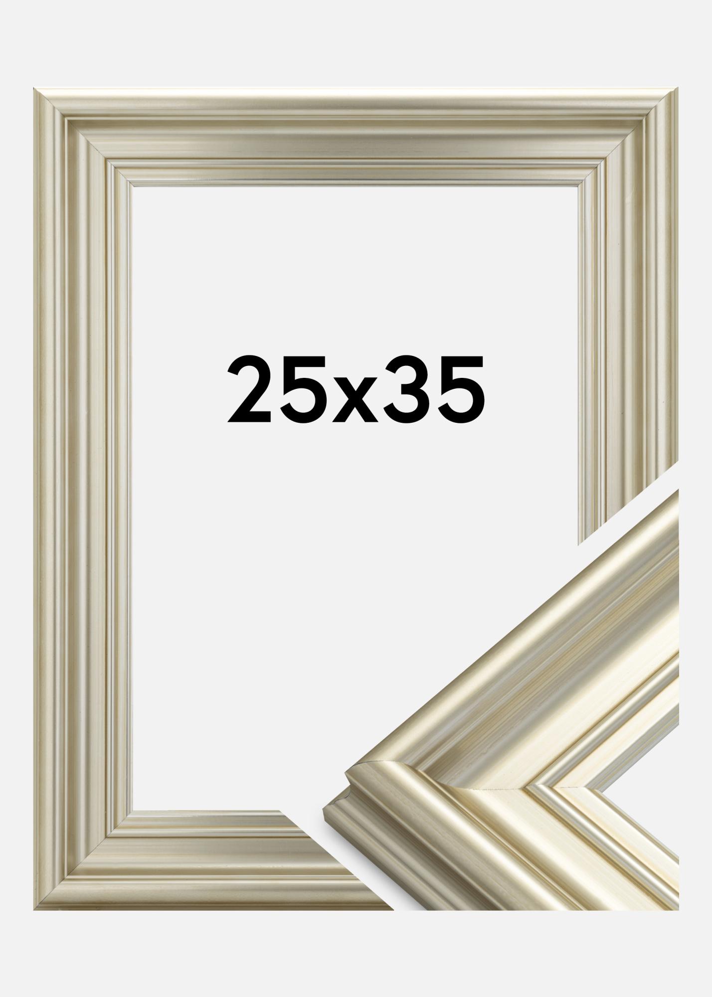 Mora Premium Silver je jeden z našich najlepších strieborných rámov. Vyrobený z dreva z našich krásnych švédskych lesov a zmontovaný v našej vlastnej rámovníckej dielni. To znamená, že môžeme zaručiť kvalitu nad rámec bežného. Rám má jemne strieborný profil v starom maľovanom štýle so šírkou až 57 mm. Perfektné pre vaše najkrajšie fotografie!