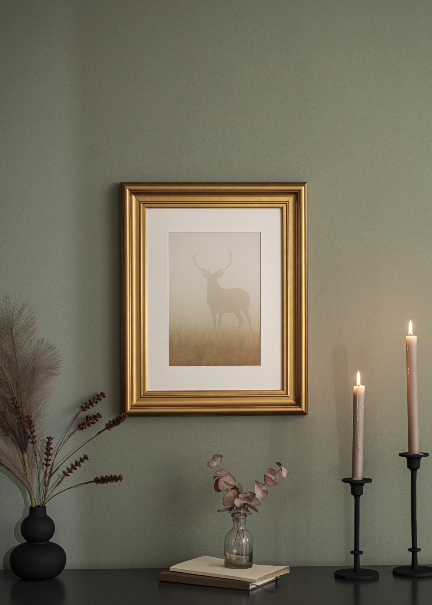 Mora Premium Guld je jeden z našich najlepších rámov na obrazy. Vyrobený z dreva z našich krásnych švédskych lesov a zostavený v našej vlastnej dielni na rámy. To nám umožňuje zaručiť kvalitu nad rámec bežného. Rám má jemne zlatú profilovú farbu v starom maľovanom štýle so šírkou až 57 mm. Perfektný pre vaše najkrajšie fotografie!