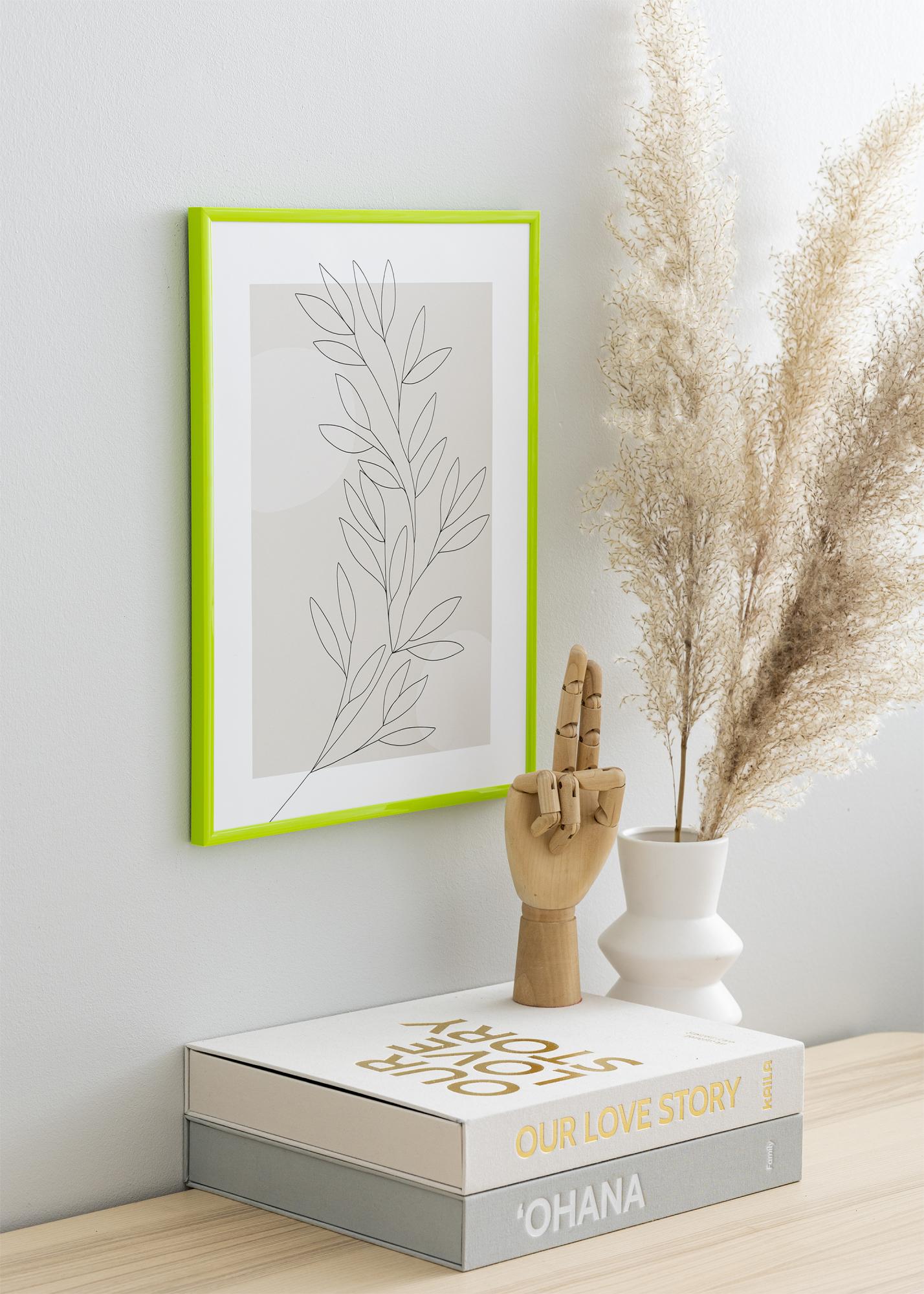 Rám, s jeho výraznou zelenou farbou a lesklým povrchom, je štýlovým orámovaním, ktoré dopĺňa moderné aj tradičné interiérne štýly. So šírkou len 9,8 mm a hĺbkou 16,5 mm poskytuje rám jemné a decentné orámovanie bez toho, aby odvádzal pozornosť od obrazu. Navyše je rám vybavený kovovými háčikmi na zadnej strane, čo umožňuje zavesenie obrazu horizontálne aj vertikálne, ideálne na prispôsobenie vášmu jedinečnému priestoru a dizajnovým preferenciám.