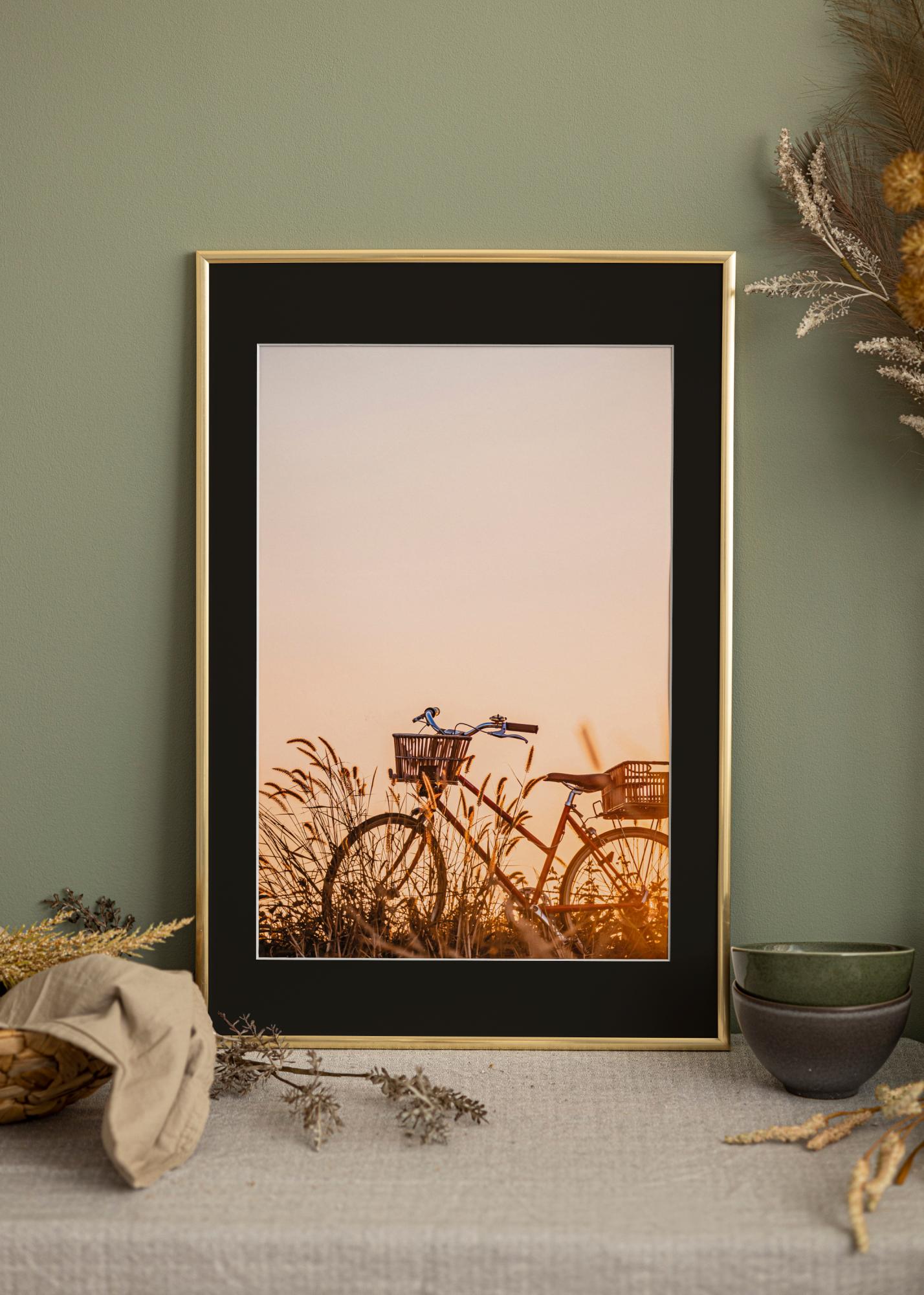 Zažite umenie zvýraznenia s naším elegantným zlatým rámom, doplneným o sofistikovanú čiernu passepartout. Tento rám je ideálny na to, aby vašej A4-fotografii (21x29,7 cm) poskytol to malé niečo navyše. Tmavá čerň passepartout vytvára vizuálnu pauzu, ktorá umožňuje divákovi sústrediť sa na fotografiu a zároveň chráni dielo pred priamym kontaktom so sklom.