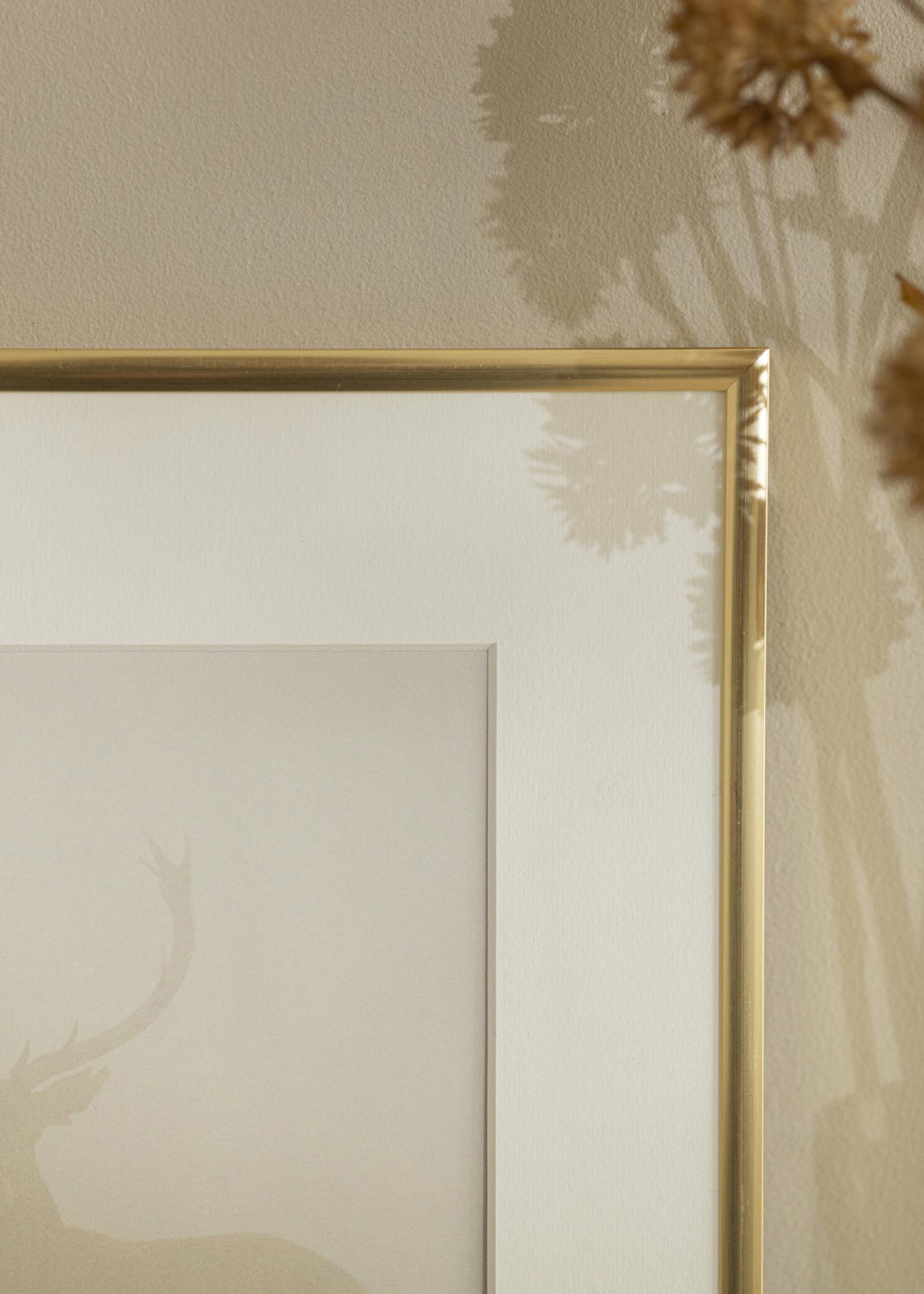 Táto elegantný zlatý rám obrazu so šírkou 9,8 mm a hĺbkou 16,5 mm poskytuje vašim obrázkom sofistikované orámovanie. S bielou paspartou, ktorá vyhovuje obrázkom veľkosti 40x70 cm, vytvára krásny kontrast, ktorý zvýrazňuje motív štýlovým spôsobom.