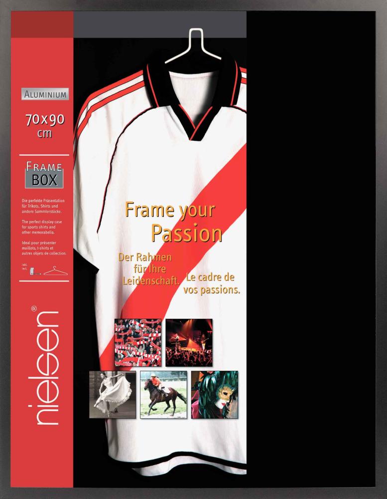 Uložte si úplet vo svojom domove tak, aby bol viditeľný! Možno máte tričko z koncertu, dres z futbalového zápasu alebo detské oblečenie z prvého obdobia bábätka, ktoré chcete zachovať krásnym spôsobom? Potom je úpletový rám Frame Box s rozmermi 70x90 cm ideálny! Toto je čierny matný rám vyrobený z hliníka s pravým sklom. Rámová lišta má šírku 22 mm a hĺbku 65 mm.