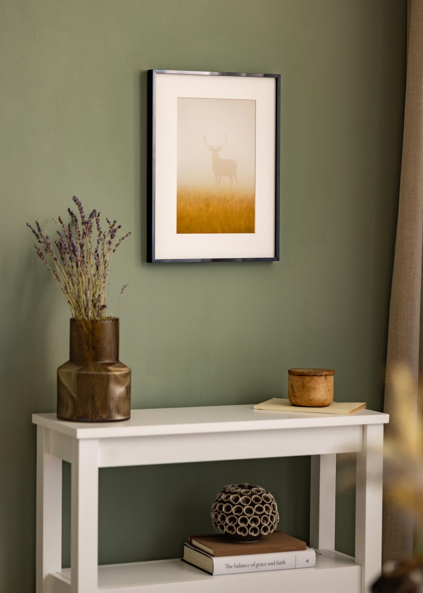 Elegantný prémiový rám s vysokým leskom a tenkým čiernym rámikom, ktorý sa dokonale hodí do moderného, elegantného interiéru. Povrchová úprava rámu a minimalistický pocit v jeho štíhlom dizajne z neho robí ideálnu voľbu pre grafické postery a čiernobiele fotografie. Rám sa vyrába z hliníka a je dostupný v rôznych veľkostiach, čo ho robí dobrým riešením, keď chcete vytvoriť obrazovú stenu s obrázkami v rôznych formátoch, ktoré sú spojené výberom rámu.
