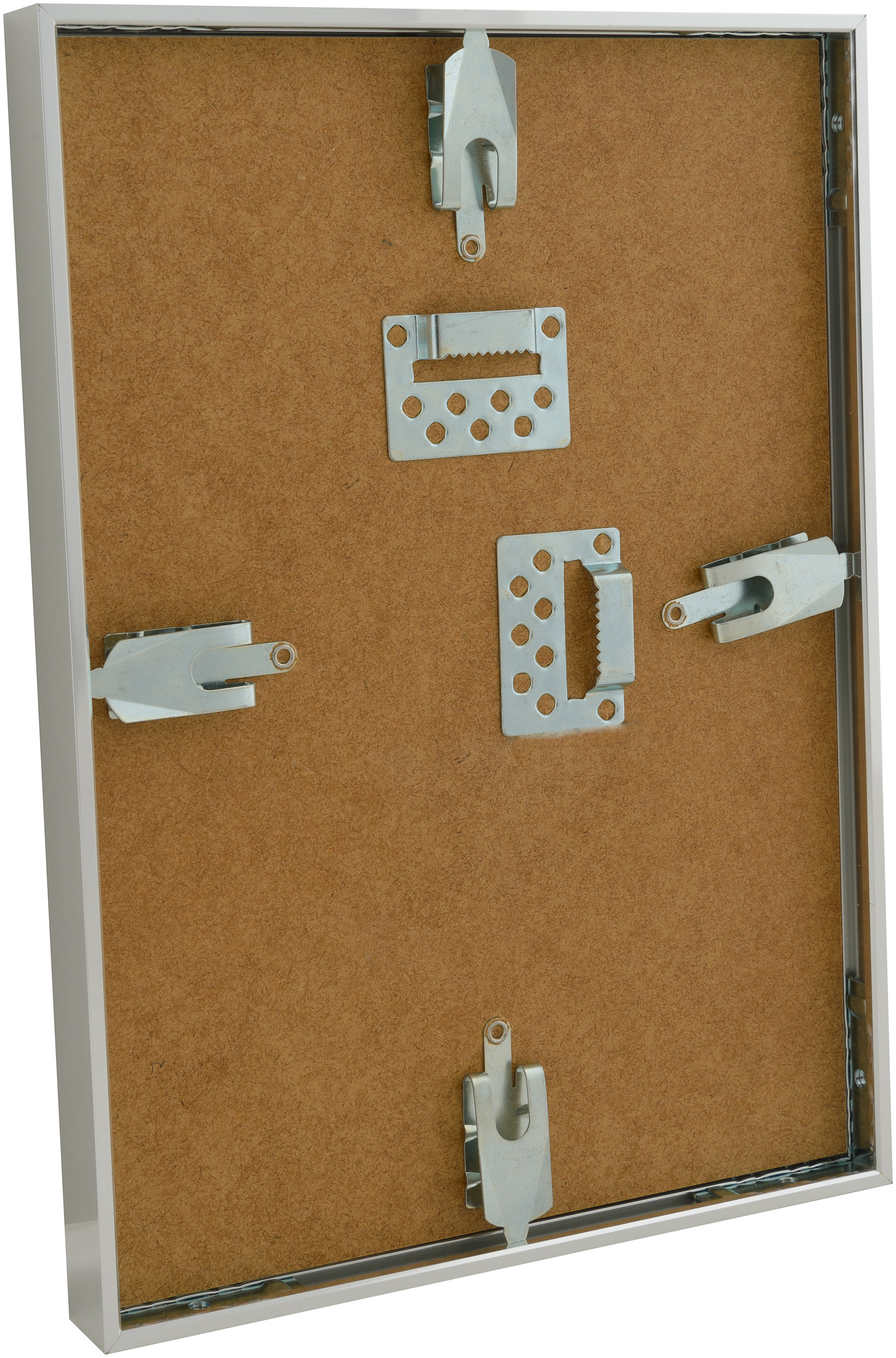 Elegantný lesklý strieborný rám na obrazy vysokej kvality, vyrobený v Nemecku s tenkým rámovým profilom z hliníka. Minimalistický dizajn rámu umožňuje jeho dobré zapadnutie do domácnosti s jednoduchým štýlom zariadenia a decentná svetlosivá strieborná farba je rovnako vhodná na rámovanie fotografií aj plagátov. Veľký výber veľkostí zabezpečuje, že rám je ideálny na použitie v obrazovej koláži, kde zoskupenie obrazov drží pokope pomocou voľby rámu.