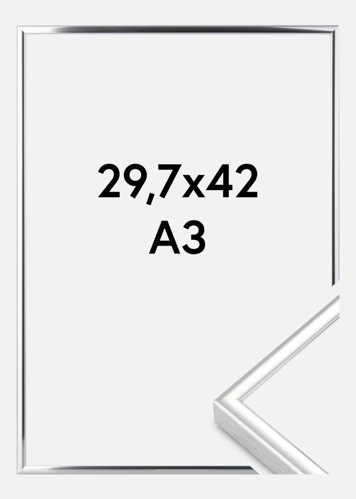 Elegantný hladký hliníkový rám v striebornej farbe s tenkým profilom v modernom dizajne. Toto je jeden z najkvalitnejších hliníkových rámov od Nielsena s vysokou kvalitou vo všetkých detailoch. Perfektné, keď hľadáte pekný rám, ktorý dodá vášmu motívu elegantný rám.