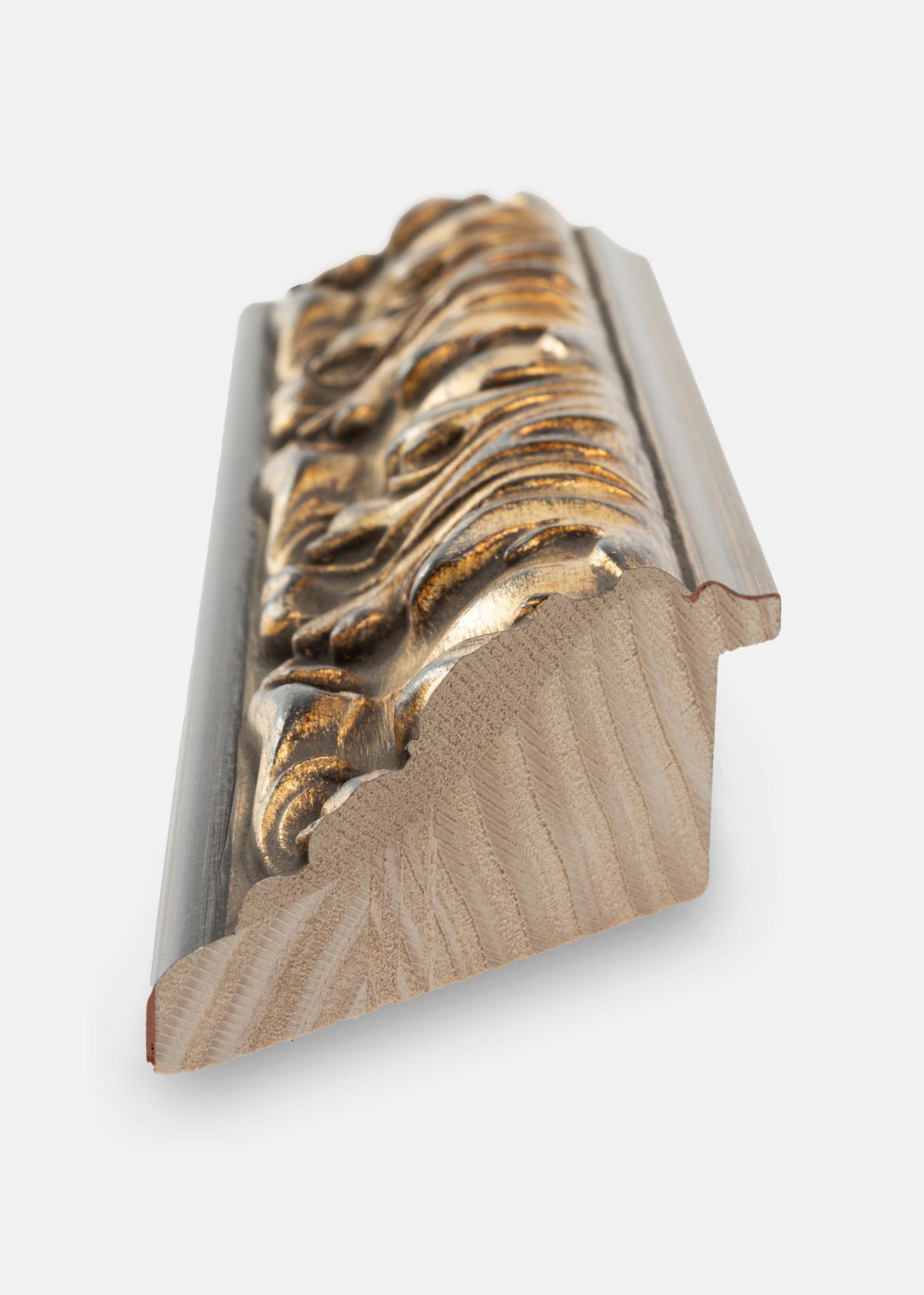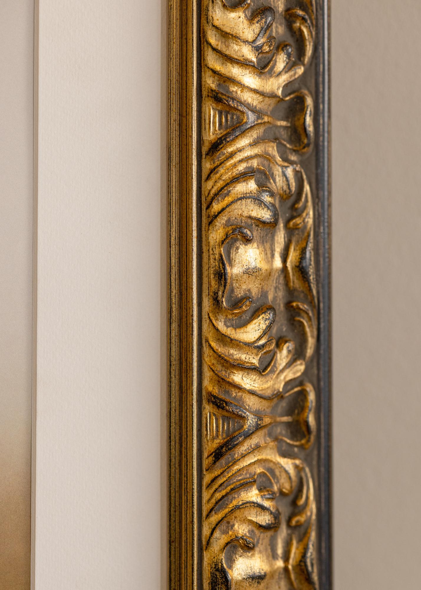 Naša na mieru vyrobená rám na obrazy Odin v zlatej a čiernej farbe je perfektnou voľbou pre tých, ktorí hľadajú elegantný a klasický rám. So svojou zlatou povrchovou úpravou a čiernymi prvkami ponúka Táto rám antický pocit, ktorý zvýrazňuje každé umelecké dielo alebo fotografiu. Ornamentálny dizajn vytvára krásny kontrast medzi teplým zlatom a hlbokými čiernymi detailmi, čo dodáva štýlový a tradičný vzhľad.